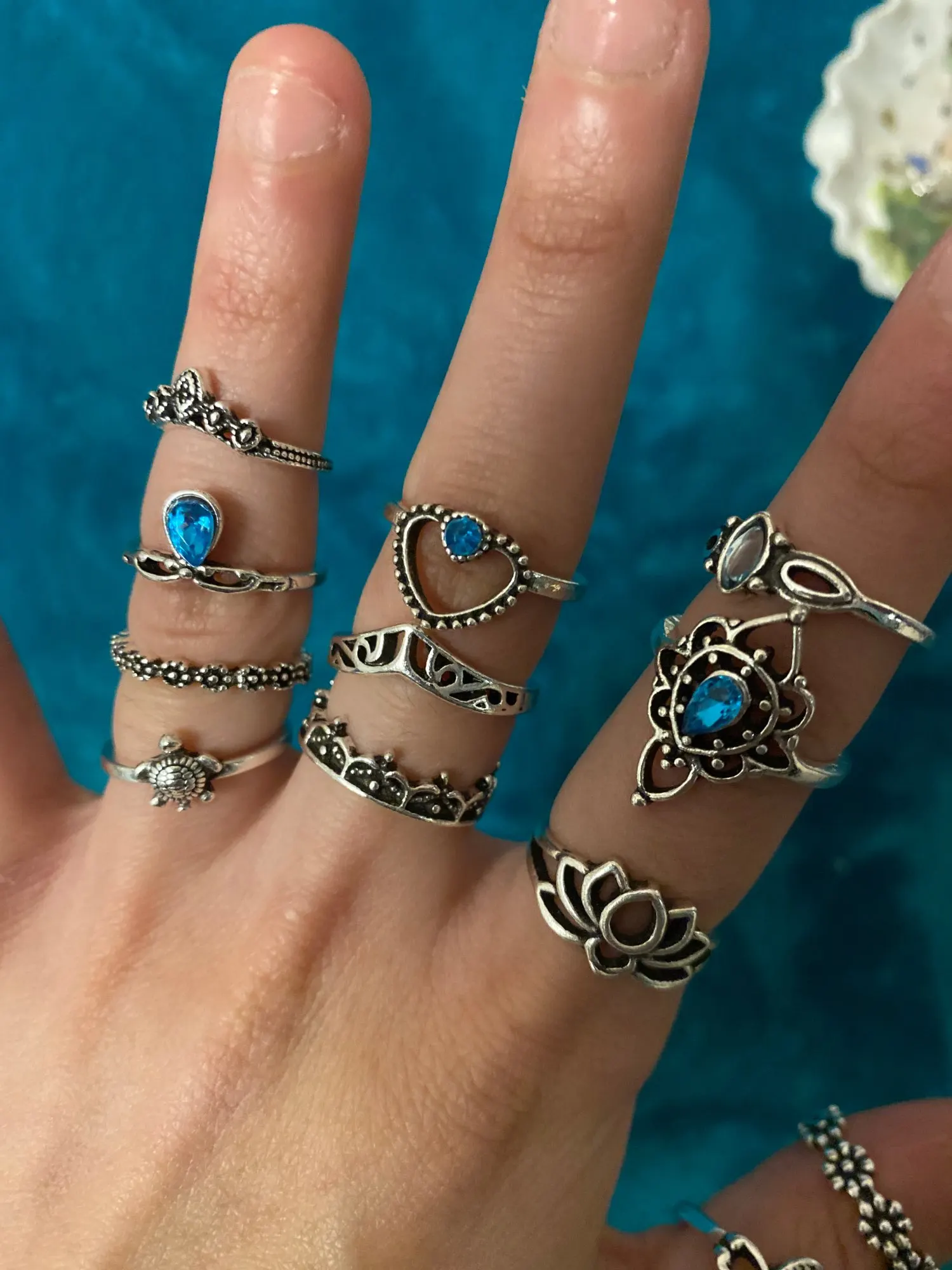 Набор Колец женских серебряных в богемном стиле, 15 шт.компл.