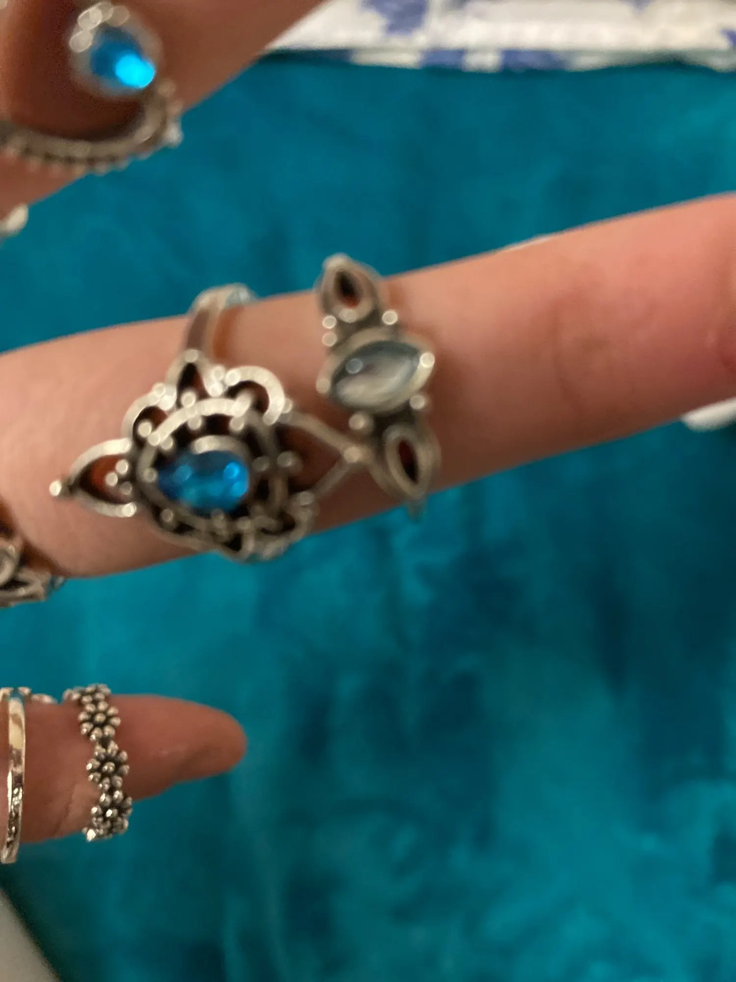 Tocona винтажный античный серебряный цветное кристаллическое кольцо...
