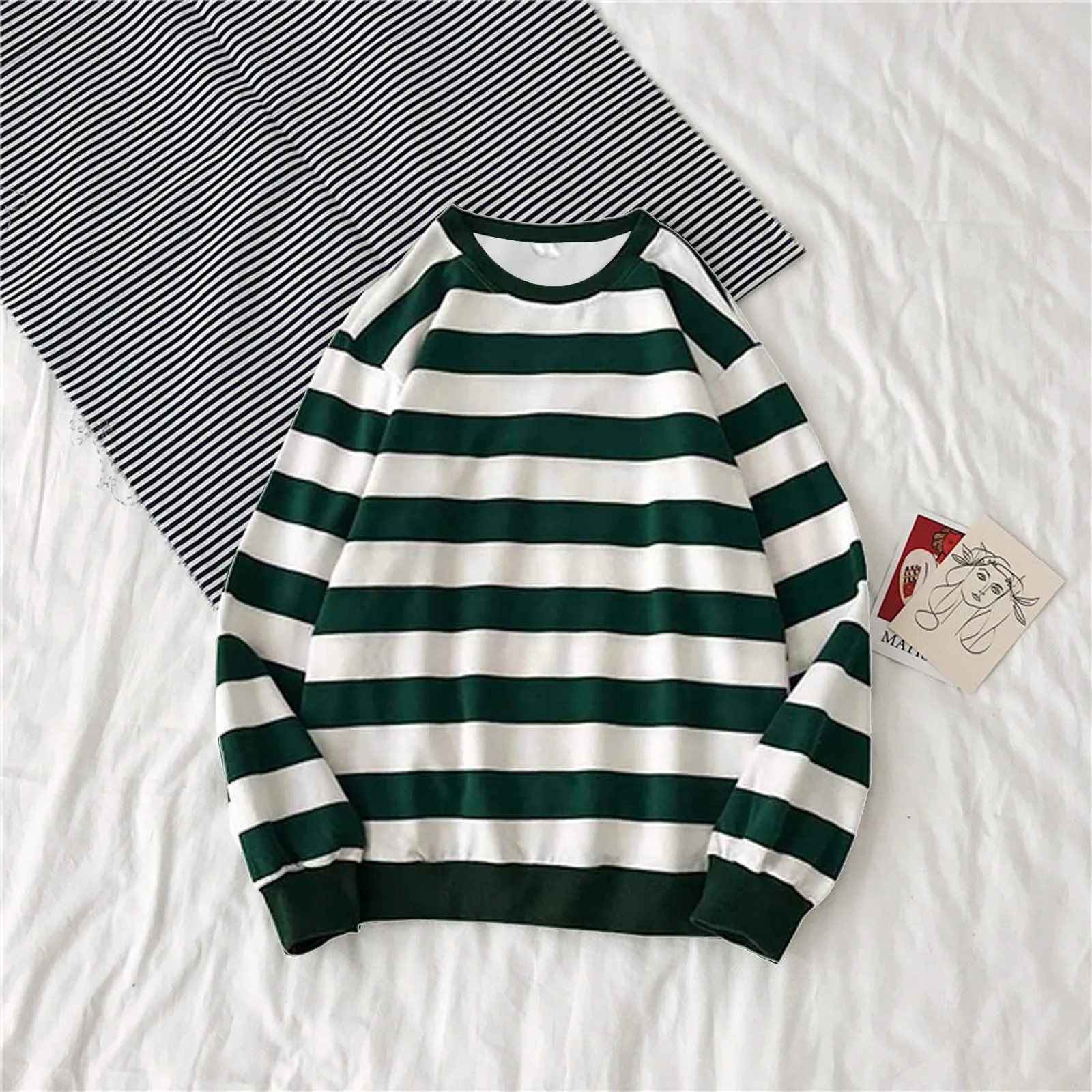 Женская осенне-зимняя толстовка с круглым вырезом и принтом в полоску
