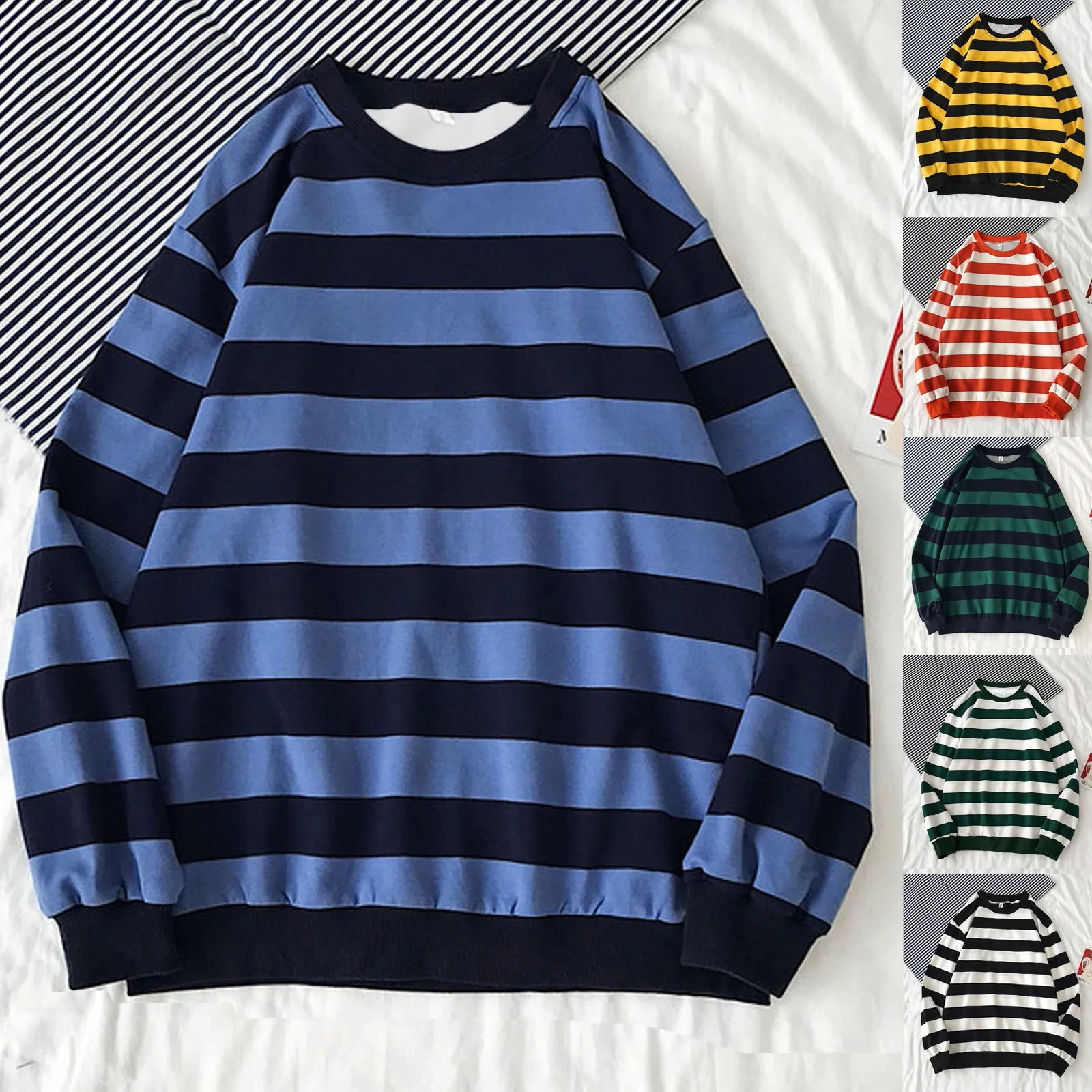 Мужская толстовка с длинным рукавом и круглым вырезом, в полоску