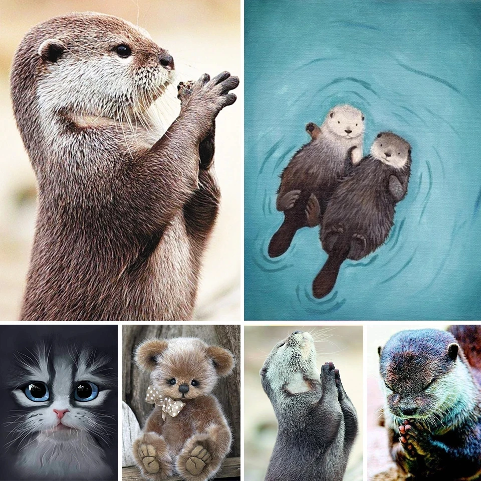 Алмазная картина сделай сам 5D с изображением медведя, куклы, выдры, Набор для вышивки крестиком, вышивка мозаикой, полная выкладка, картина Стразы для декора ванной комнаты
