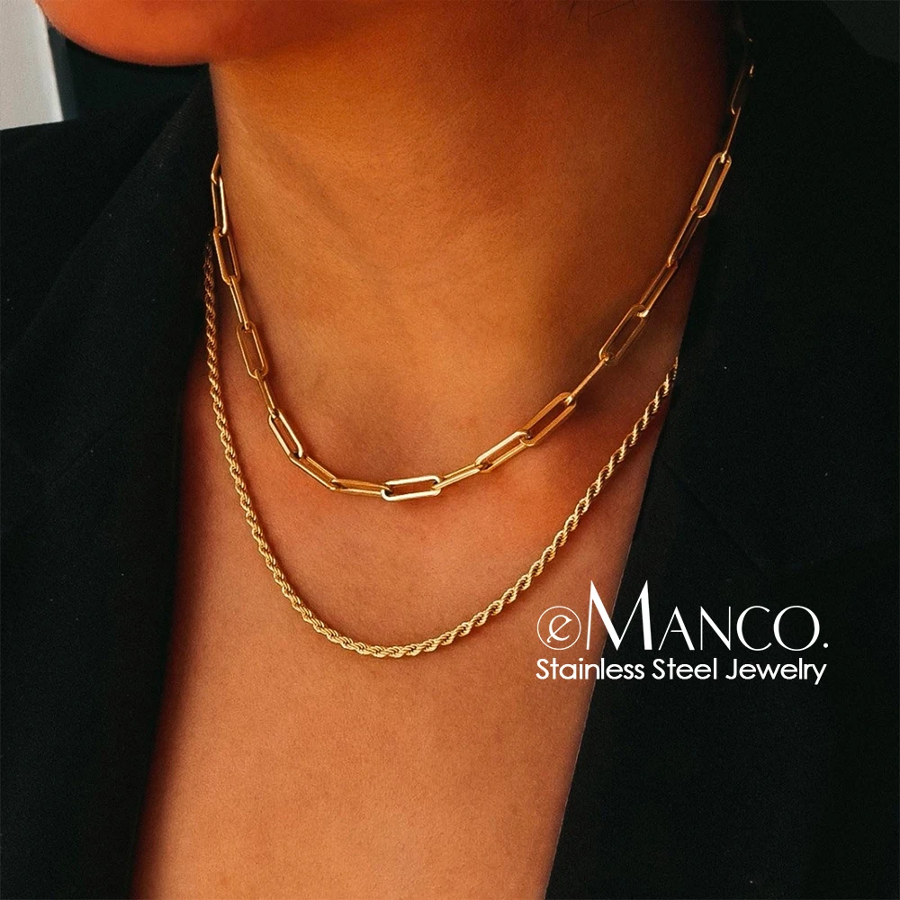 Ожерелье e-Manco из нержавеющей стали с витой цепью, многослойное ожерелье из 14-каратного золота с зажимом для бумаги, квадратная цепь, ожерелье, женское ювелирное изделие, чокер