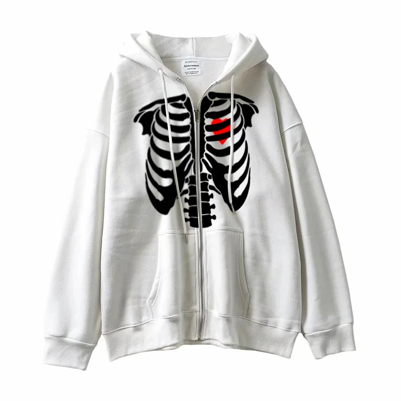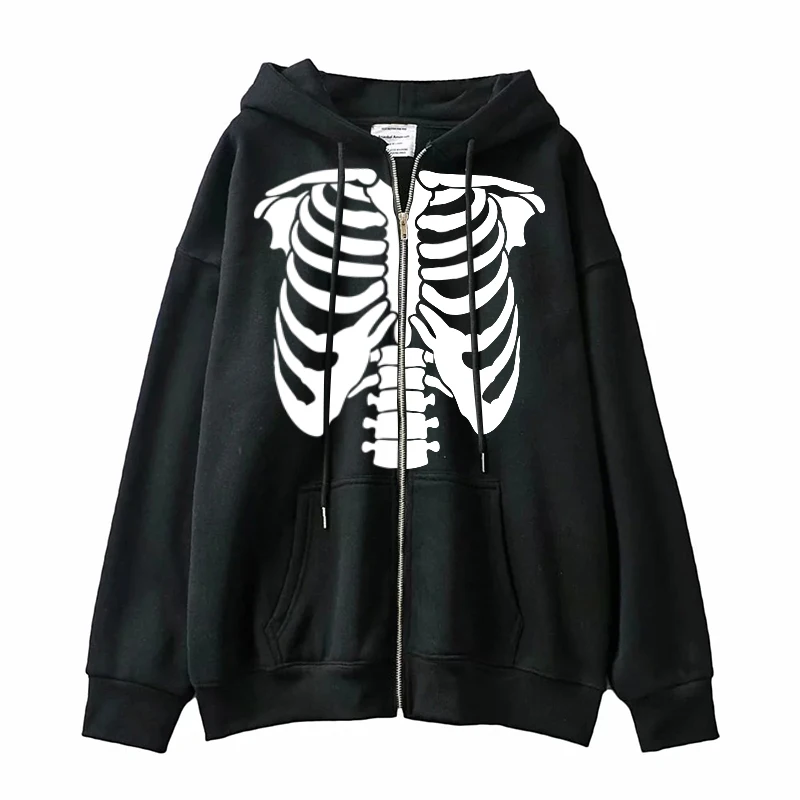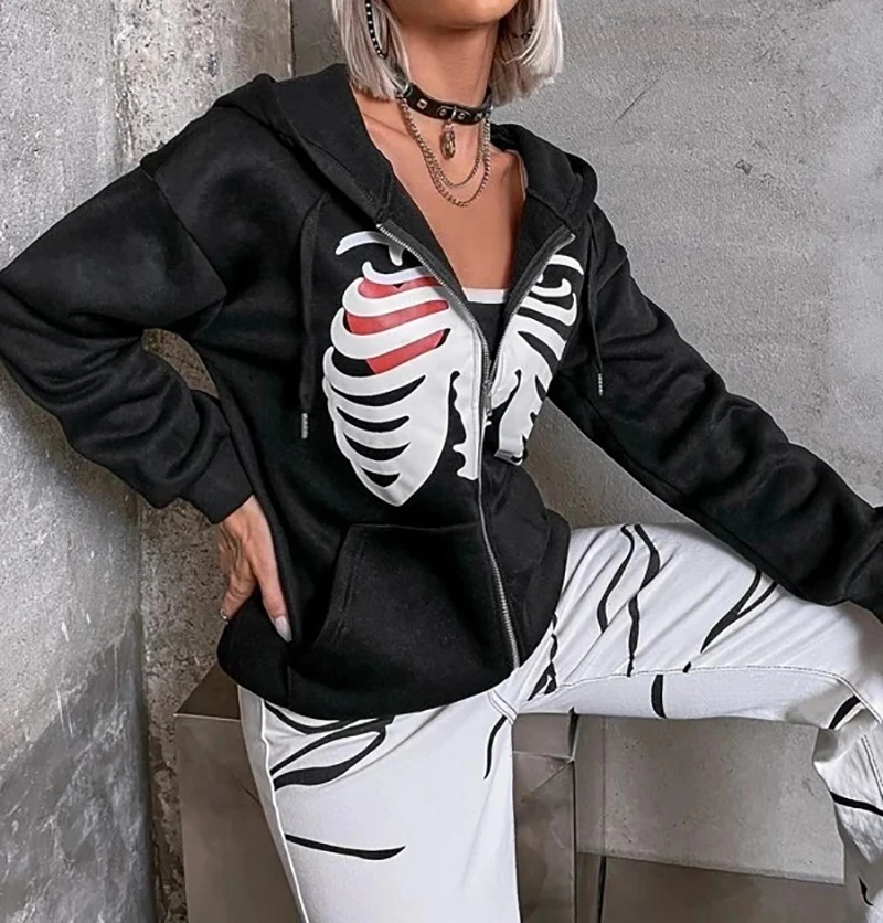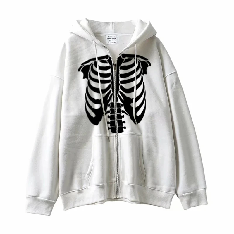 Толстовка Y2K с капюшоном и принтом скелета, толстовки с капюшоном на молнии, Женская куртка с длинным рукавом, свободная уличная одежда в стиле ретро, пуловер в стиле Харадзюку, свитшоты для мужчин