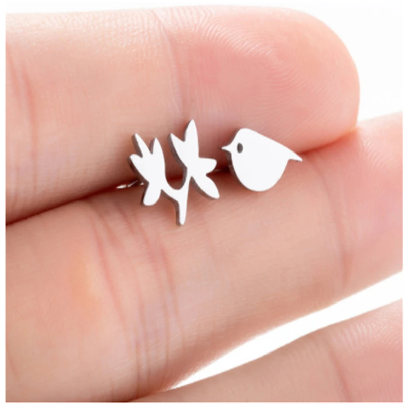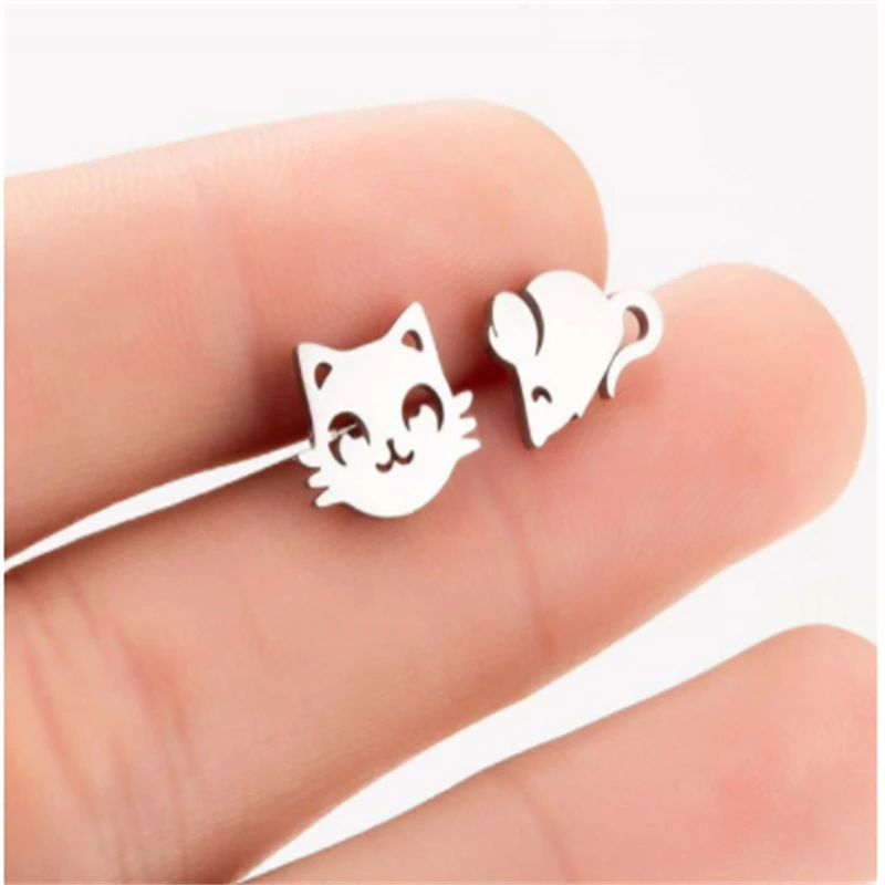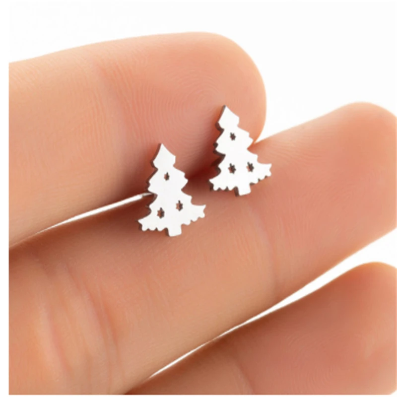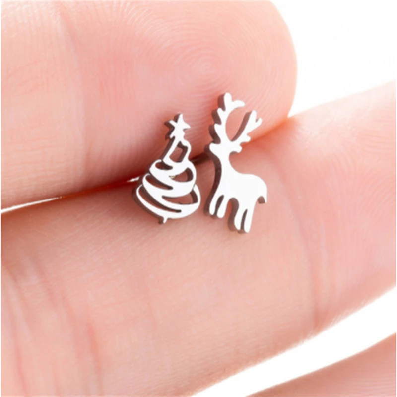 Новинка 2021, серьги с мультяшными животными и оленями, маленькие серьги в виде снежинок для девочек, детские рождественские украшения из нержавеющей стали, женская подвеска