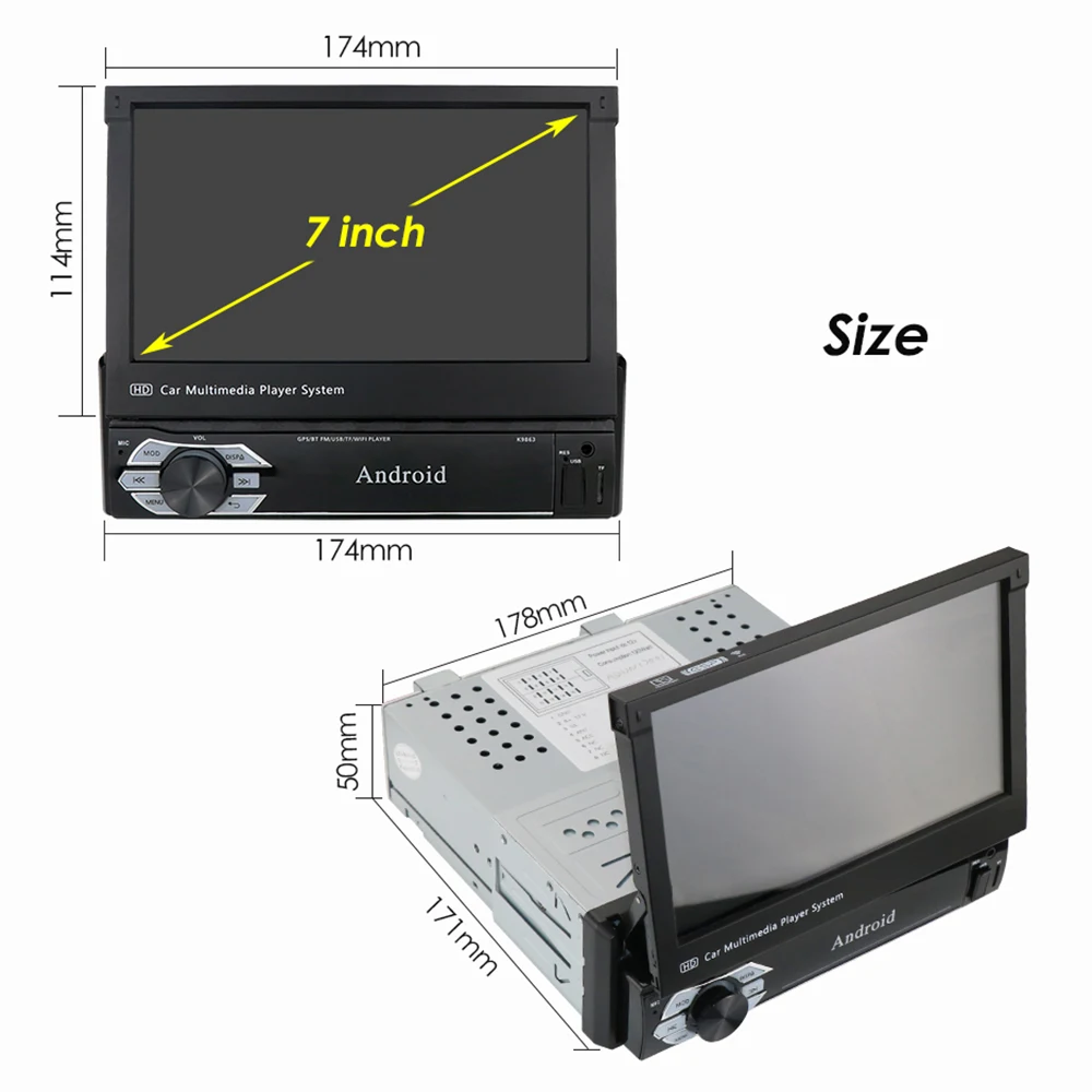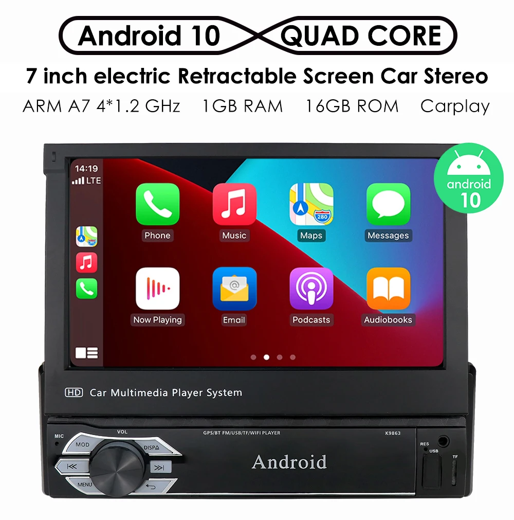 Автомобильный мультимедийный плеер Carplay, универсальная стерео-система на Android, с выдвижной панелью, GPS, Wi-Fi, RDS, USB, BT, ПК, Типоразмер 1DIN