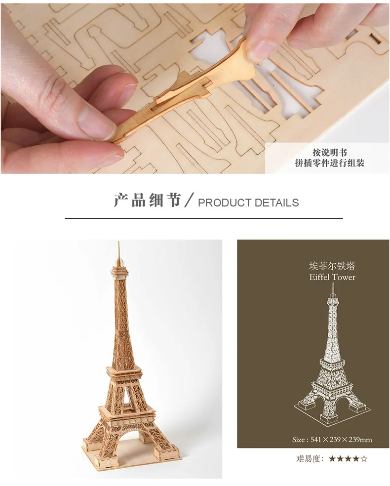 Модель Эйфелевой башни, строительные блоки, 3D Деревянный пазл, сборная игрушка, трехмерный пазл, детская игрушка, подарок