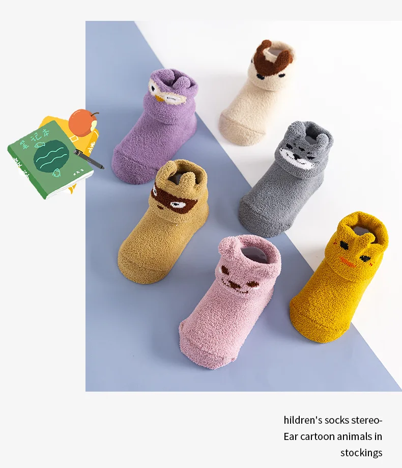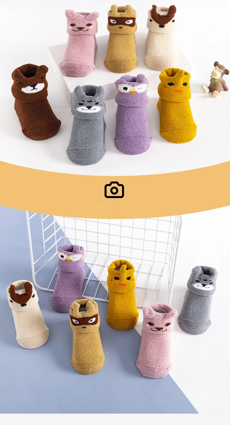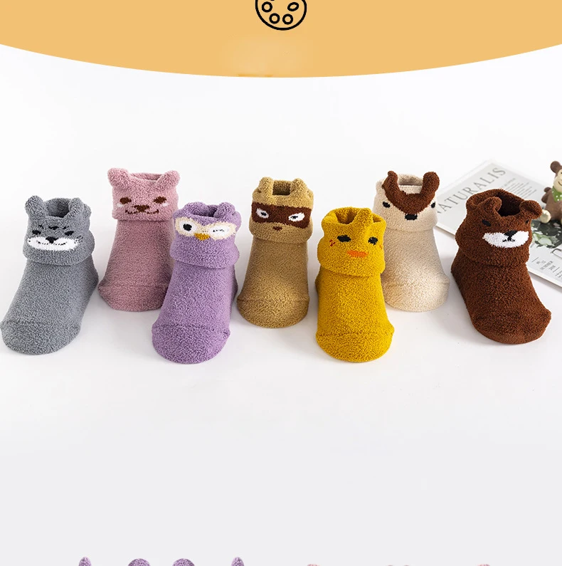 Носки для новорожденных, утепленные Мультяшные удобные хлопковые но...