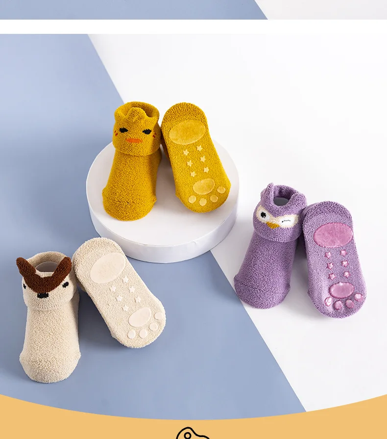 Детские Нескользящие носки из кораллового флиса, осенне-зимние тепл...