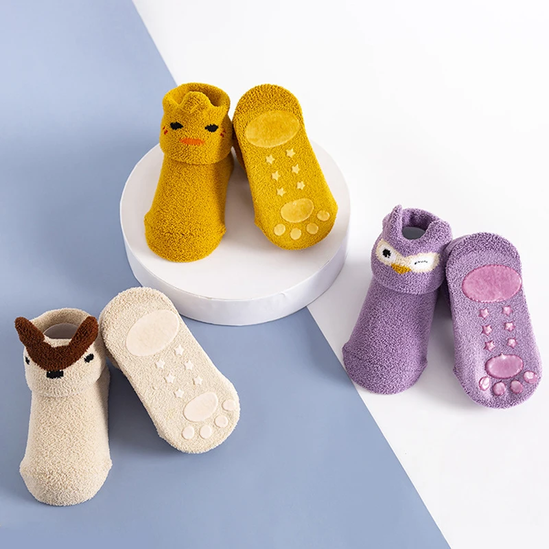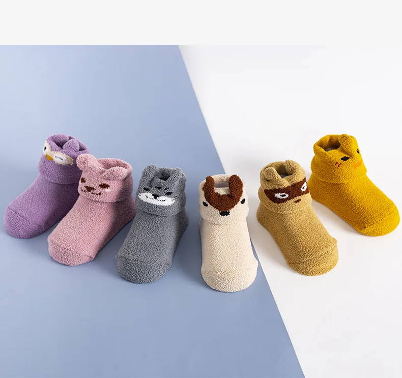Теплые носки для новорожденных, нескользящие носки из кораллового флиса на осень и зиму