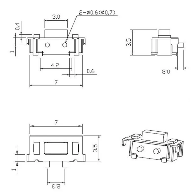 100 шт. микро, тактовый сенсорный переключатель 3*6*3,5 3x6x3,5 SMD...