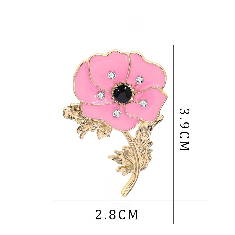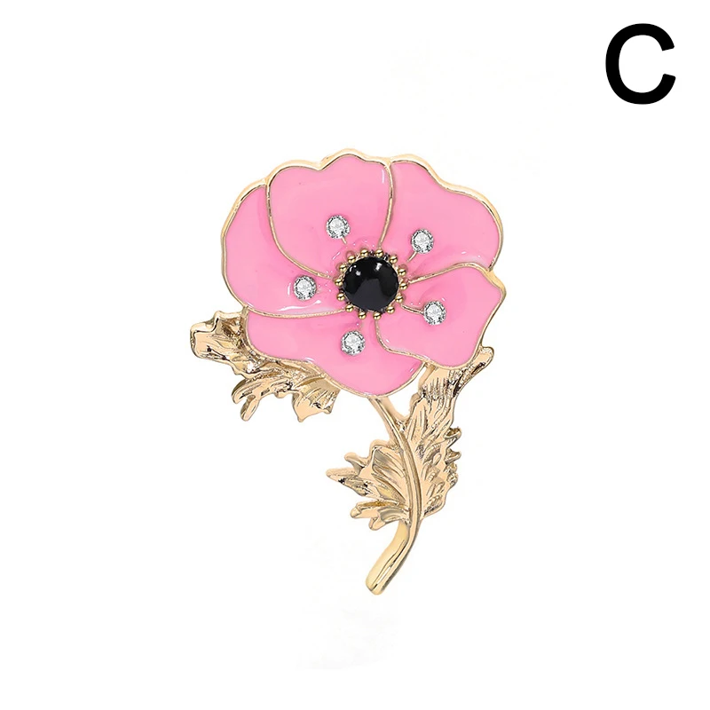 Женская Винтажная брошь в виде цветка мака, эмалированная брошь с к...