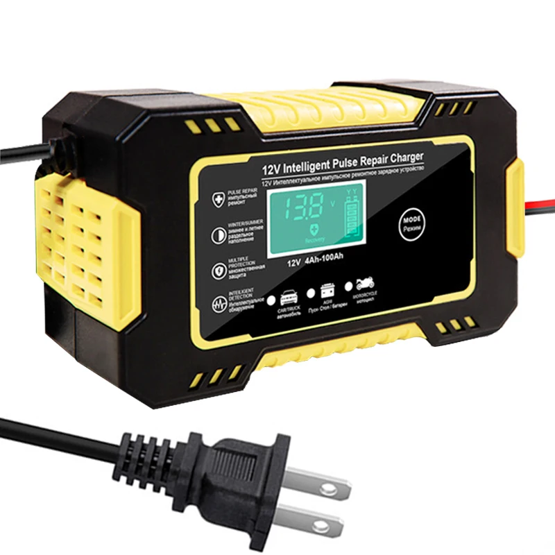 Зарядное устройство для автомобильного аккумулятора, 12 А, сенсорный экран, импульсный ремонт, зарядное устройство с ЖК-дисплеем для автомобиля, мотоцикла, свинцово-кислотный аккумулятор Agm Gel Wet