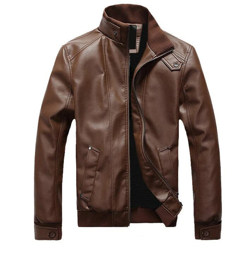 Мужские кожаные куртки, мужские пальто с воротником-стойкой, Мужска...