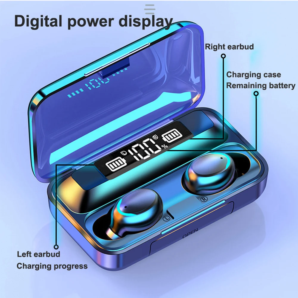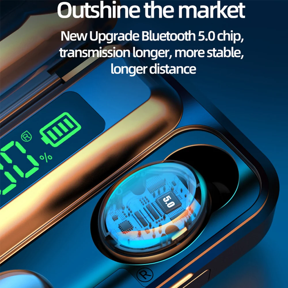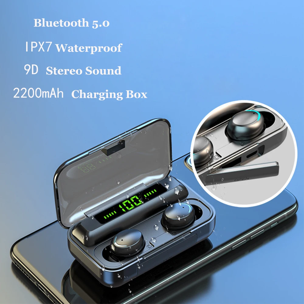Tws Беспроводные Bluetooth 5,0 наушники-вкладыши IPX7 водонепроницаемые наушники 9D стерео звук с внешним аккумулятором 2200 мАч микрофон для спорта