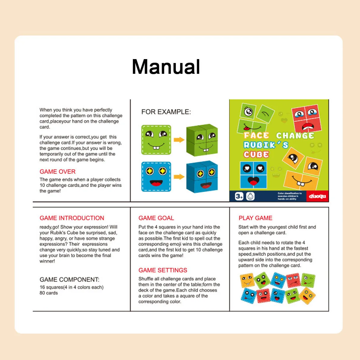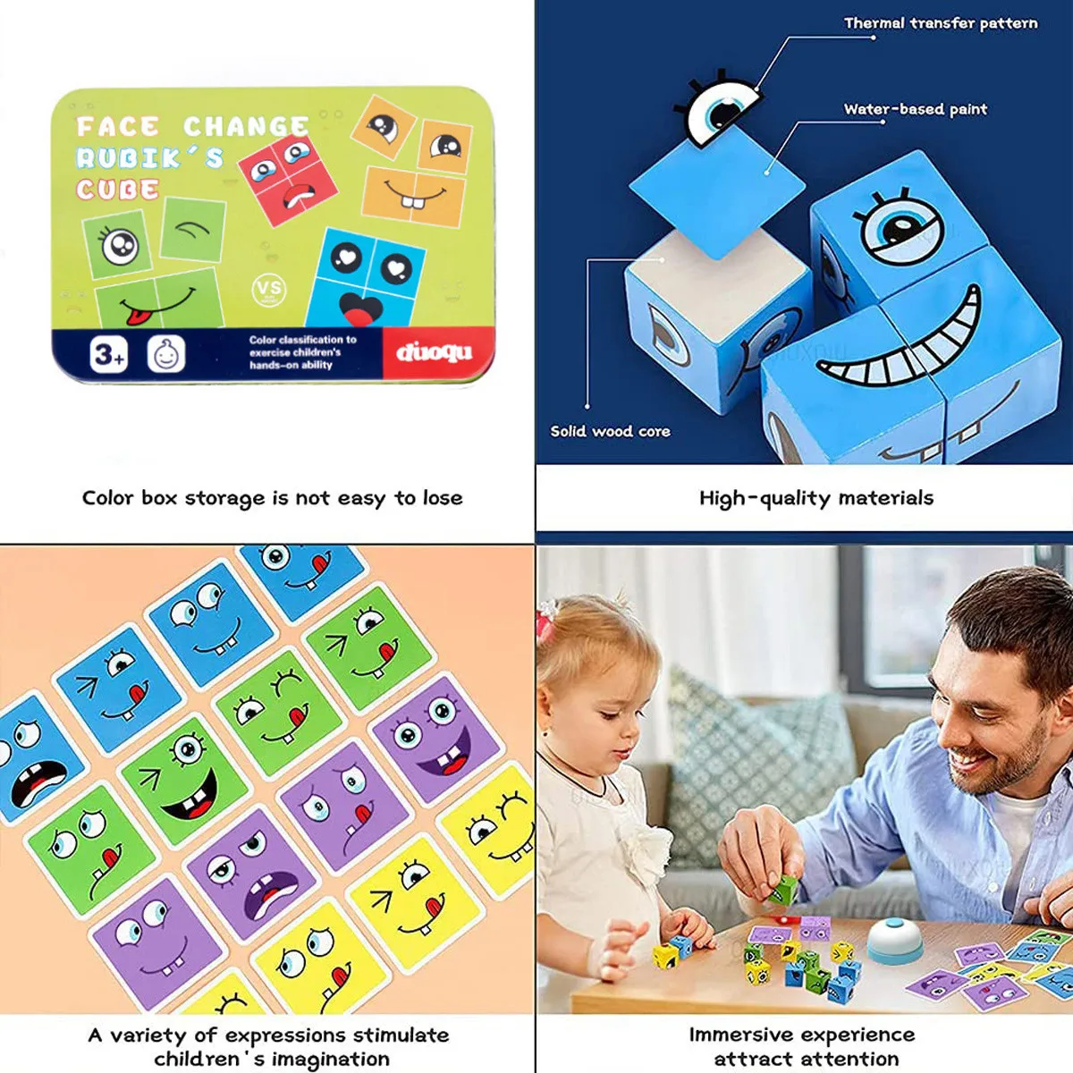 【Хорошие социальныеGame】этот набор игрушек поставляется с 16 деревянными блоками с выражением и 64 шт.Сложные карты лица, маленький размер и портативный. Дети могут играть со своимиЧленов семьи, а также их школьных одноклассников. Эта игра способствуетМежличностные навыки детей и углубление дружбы между детьми.