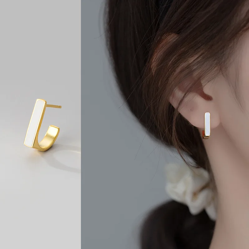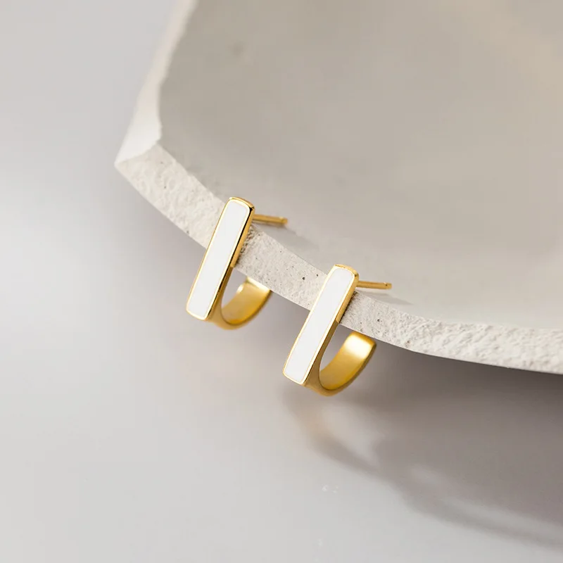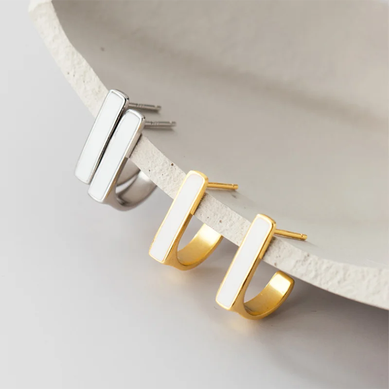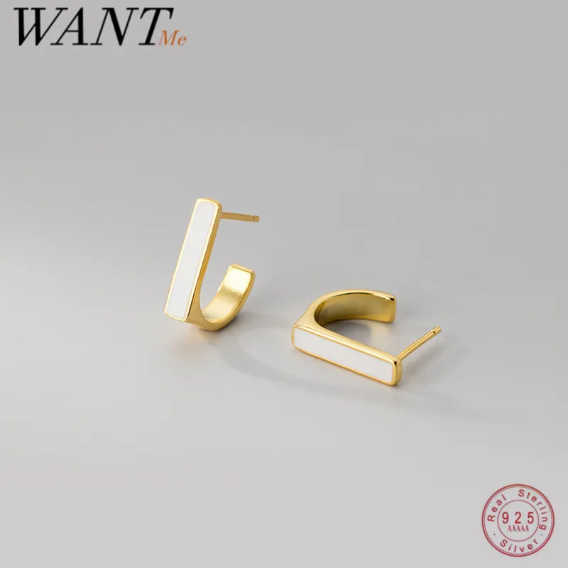 Женские Геометрические серьги WANTME, элегантные серьги-гвоздики из серебра 925 пробы с белой эмалью и квадратом, модные эффектные ювелирные украшения с золотым покрытием
