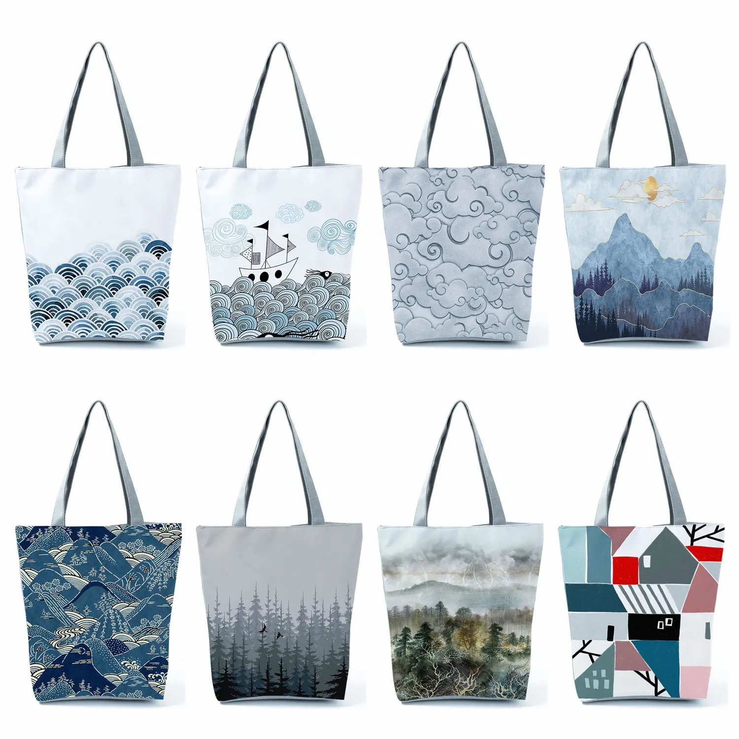 Женская сумка с красивым ландшафтом, складные Экологичные тоуты в стиле Харадзюку, повседневные дамские сумочки, подарок для одноклассника, индивидуальный узор