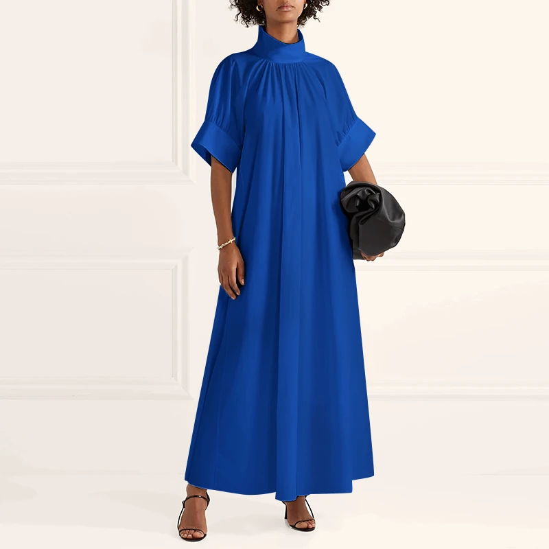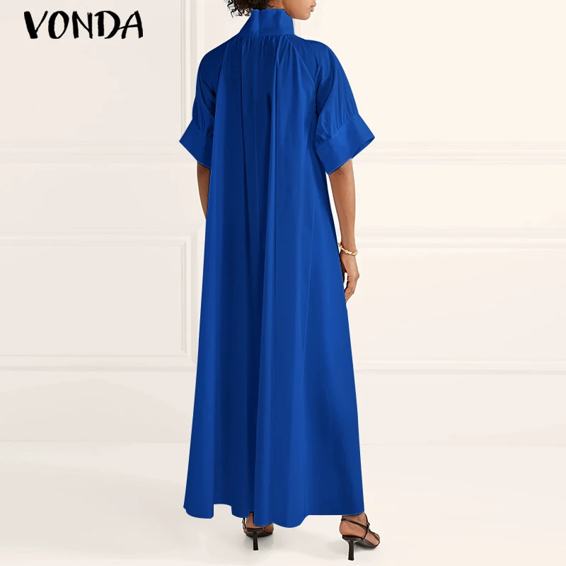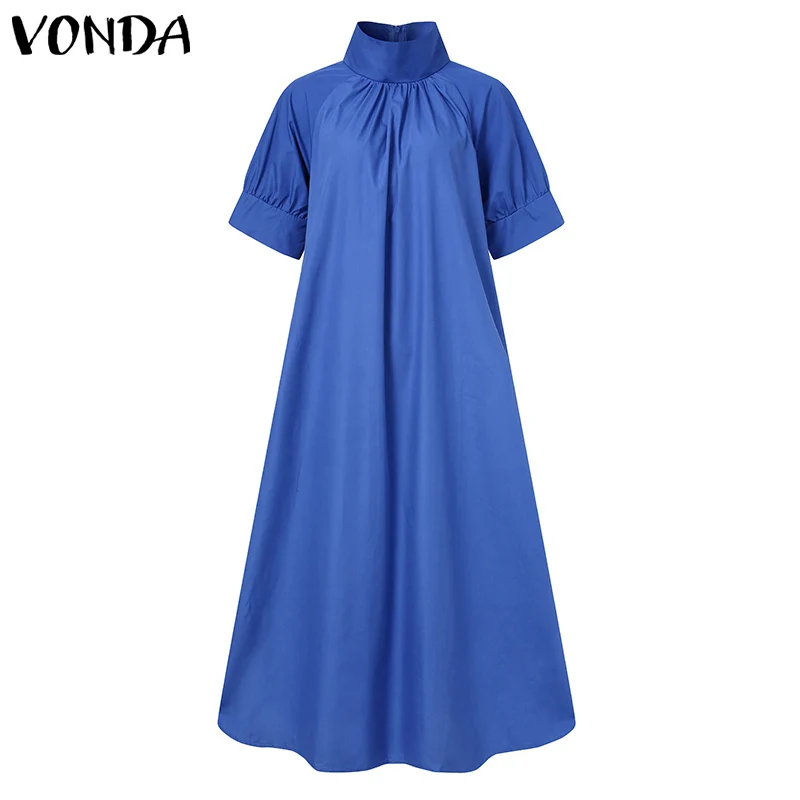 Элегантное Длинное Платье VONDA, женская одежда, плиссированные вечерние платья с коротким рукавом, сарафан с высоким воротником, женское винтажное летнее платье