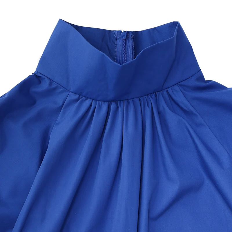 Женское платье-трапеция, с отложным воротником и рукавами-фонарикам...