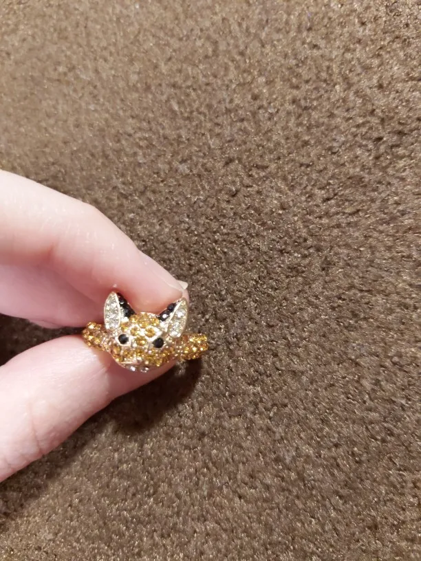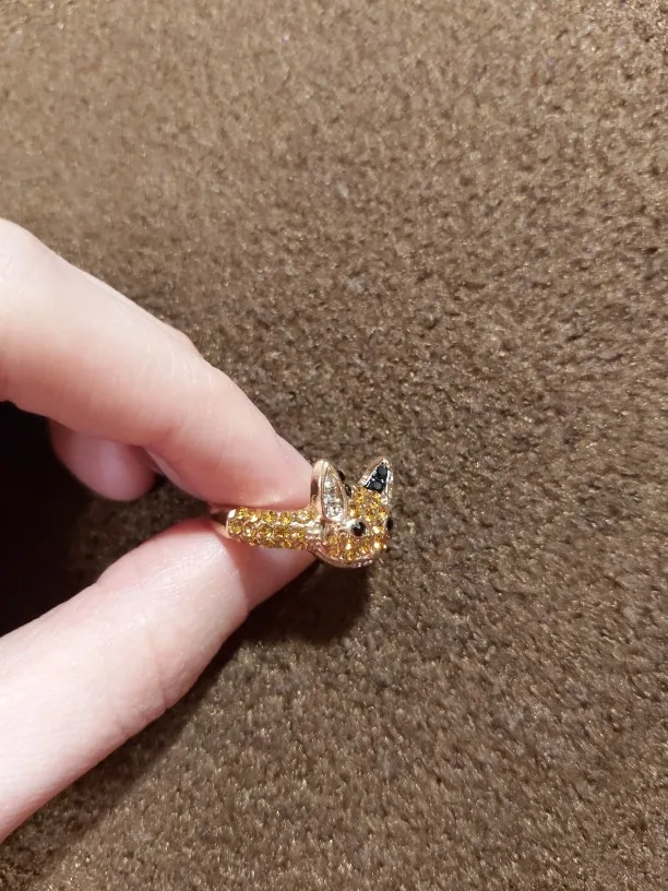Мордочка лисички похожа на мордочку собачки - бульдога или мопса))) Потому что золотой носик совсем сливается по цвету с кольцом. Возможно, если покрасить носик в черный цвет, то будет больше похоже на лисичку :)