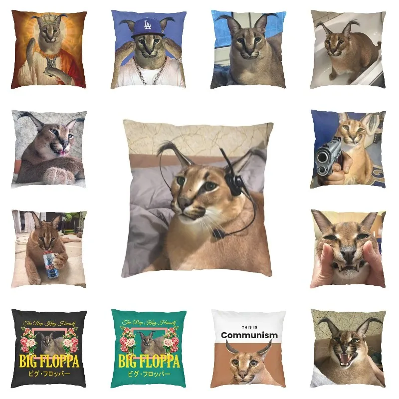 Женская большая наволочка Floppa с забавным мемом, наволочка с рисунком кошки, наволочка для домашнего декора, наволочка для дивана, креативная наволочка из полиэстера
