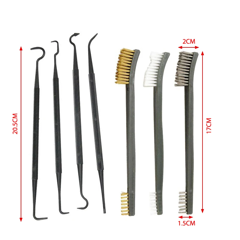 7 шт.компл. универсальный набор для чистки оружия, 3 щетки из стальной проволоки, 4 нейлоновых набора для охоты, тактического пистолета