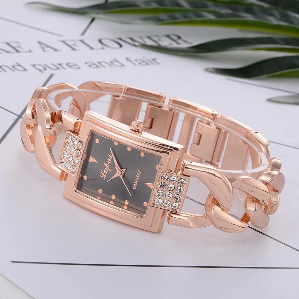 РоскошныйКварцевые часы для женщинГорячая РаспродажаСплав Прямоугольные наручные часы Простой женский браслет Montre наручные часы