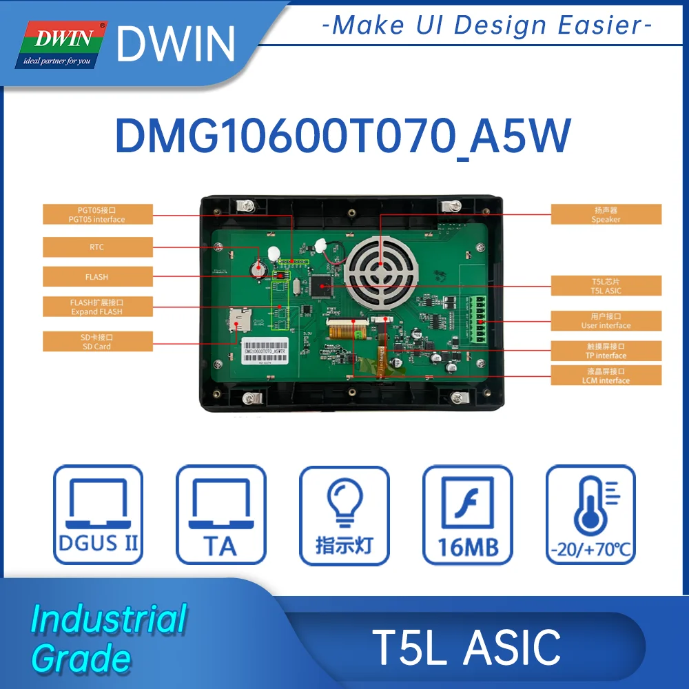 Продукция HMI с дисплеем DWIN, разрешение 1024*600, 7-дюймовые ЖК-модули с rs485 rs232 для подключения Arduino PLC, dmg10600t070 _ a5w