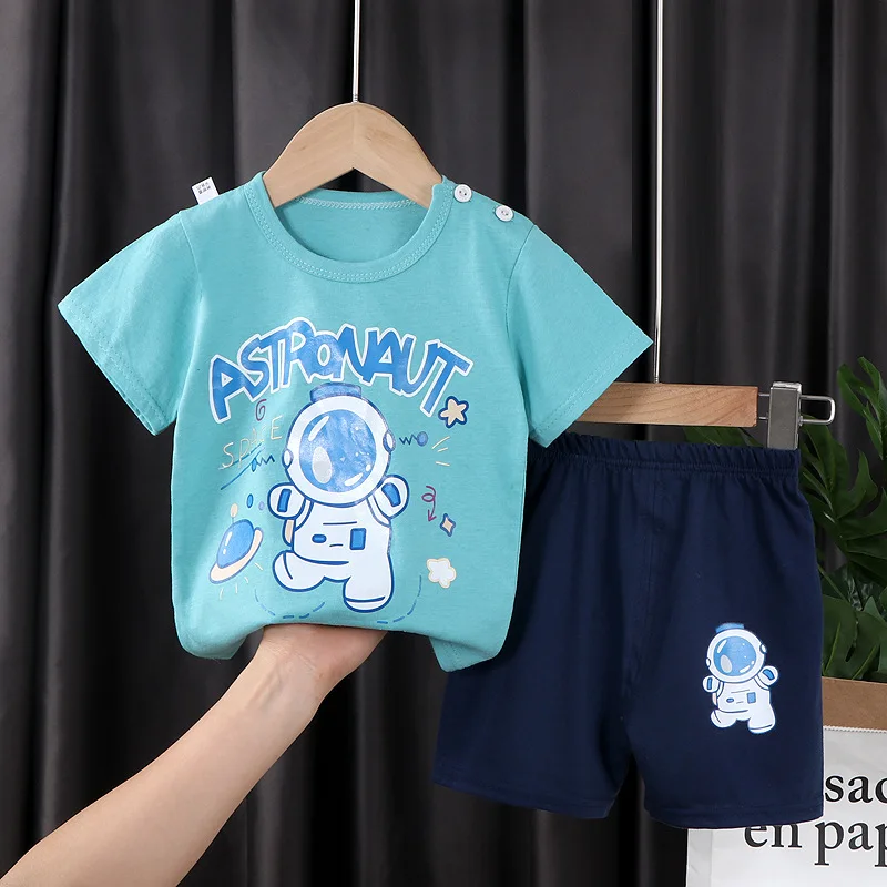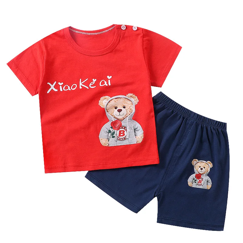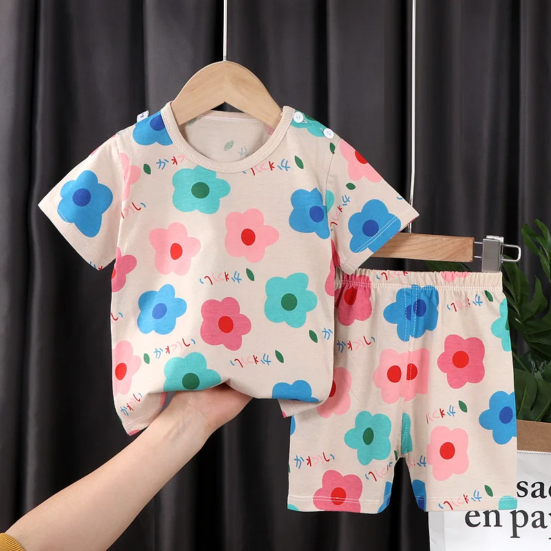 Детский костюм из 100% хлопка с коротким рукавом, новинка 2022, летняя одежда, футболка и шорты для мальчиков и девочек, комплект из двух предметов, наряды для маленьких девочек