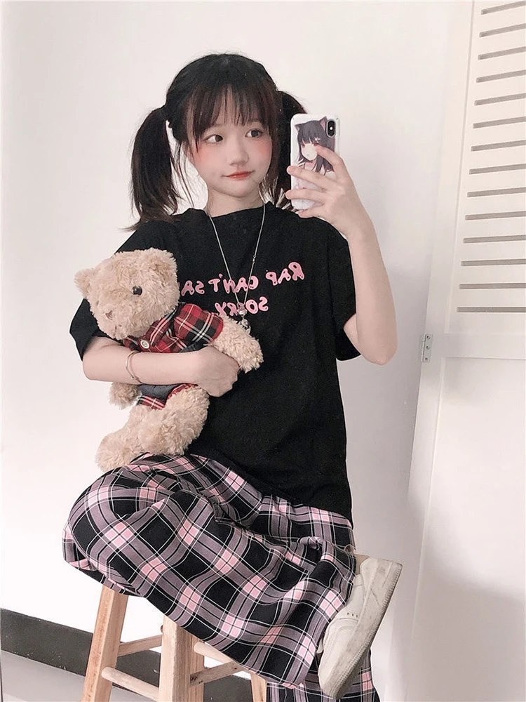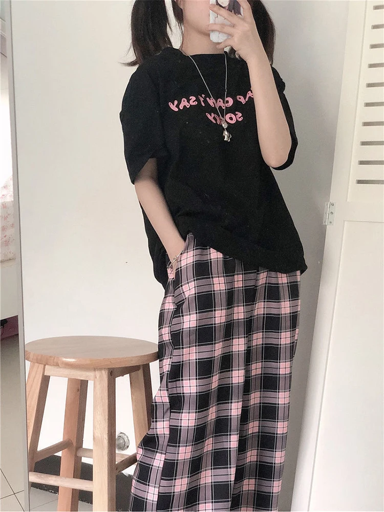 Брюки женские в клетку, милые готические прямые штаны с широкими штанинами в стиле ретро, уличная одежда в стиле хип-хоп для подростков, эстетика E-girl