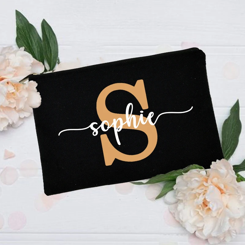 Индивидуальная сумка для макияжа, сумка для подружки невесты, подружки Honor, праздника, свадьбы, девичника, подарок на вечеринку, холщовая монограмма, косметические чехлы на молнии