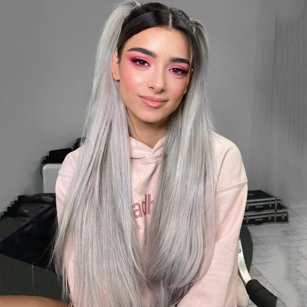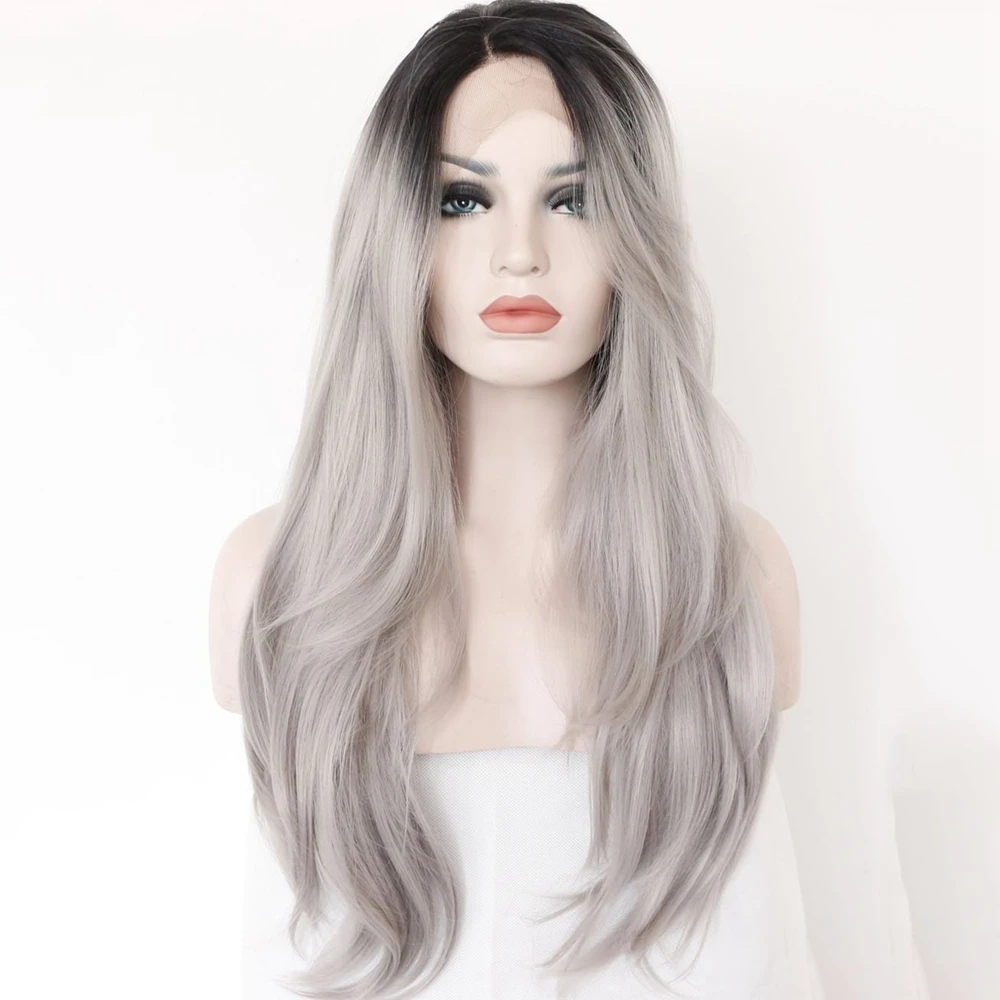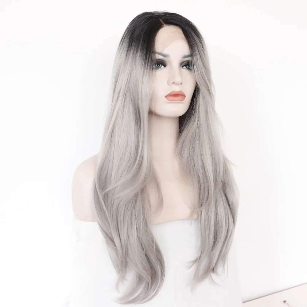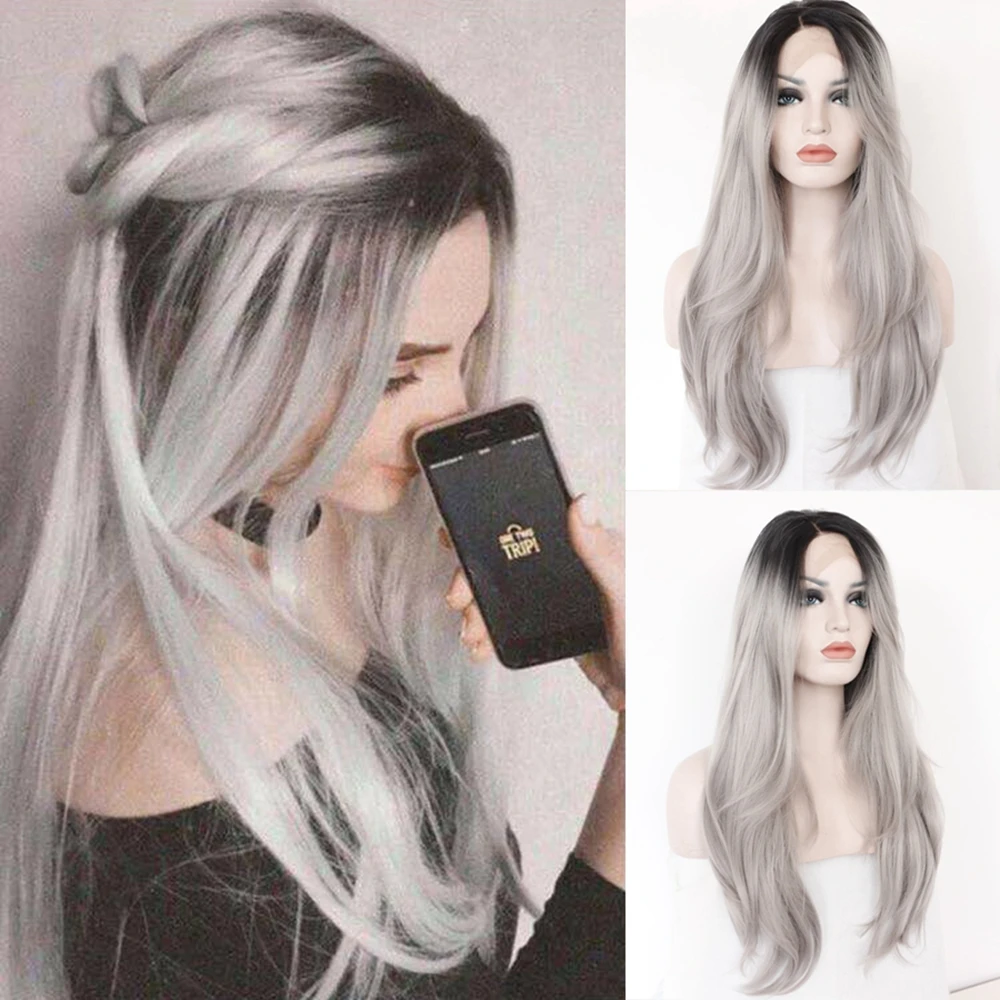 Серебристо-серый парик на сетке Kryssma, Синтетические серые прямые парики для чернокожих женщин, термостойкие волосы из волокна, 4x1 T, средняя часть
