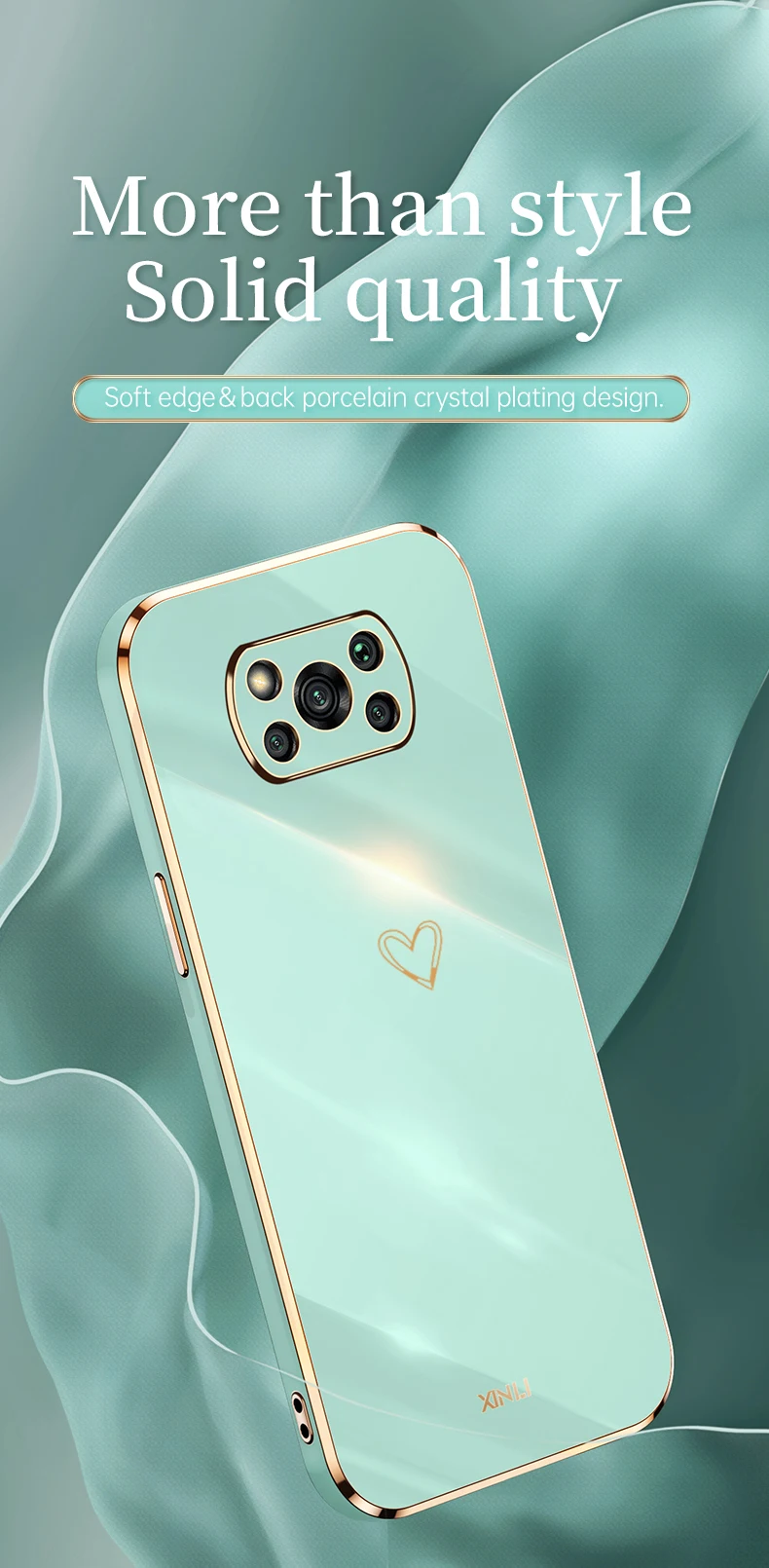 product NameLuxury Square Plating Soft Silicone Love Heart Pattern Phone Case For Xiaomi Mi Poco X3 Gold Back Cover