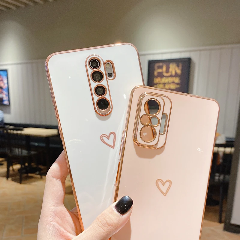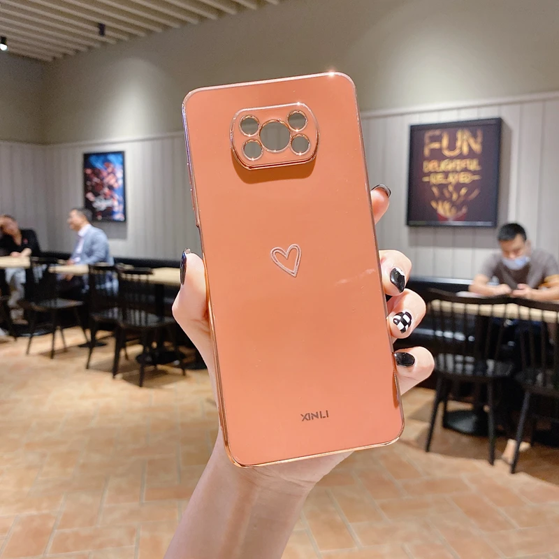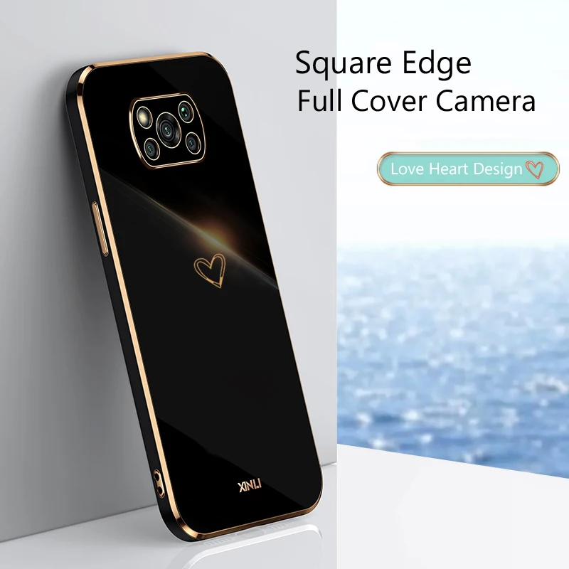 Чехол для телефона с квадратным покрытием и сердечком для Xiaomi Mi Poco X3 Pro X 3 Nfc Gt 5g Poko X3pro, роскошный защитный чехол с золотыми краями