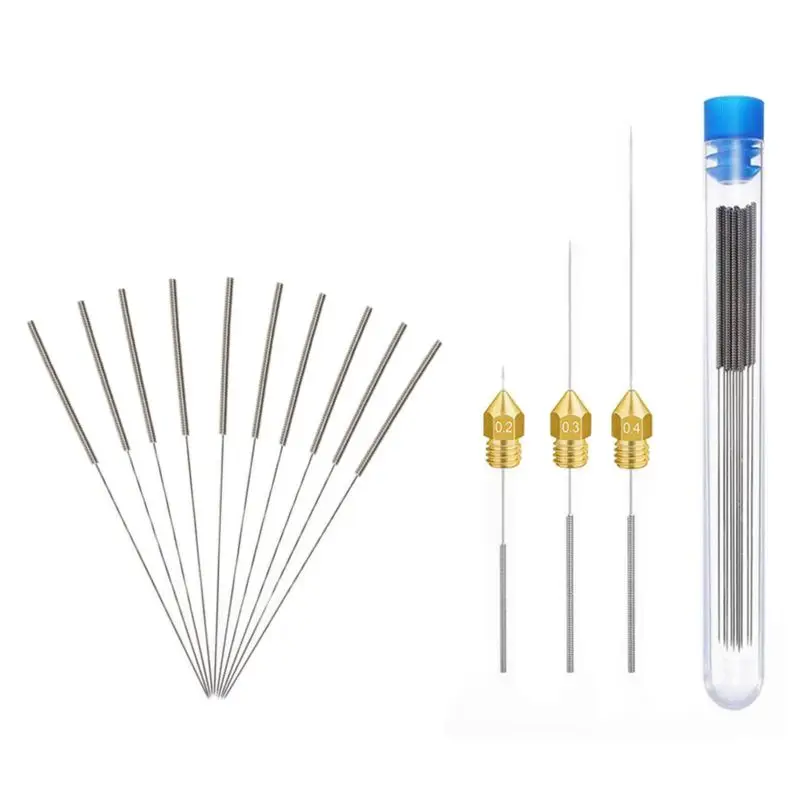 0,150,20,250,30,350,40,50,60,81,0мм, 10 шт., иглы для чистки сопла из нержавеющей стали, инструмент + 1 шт. трубка для 3D-принтеров, детали