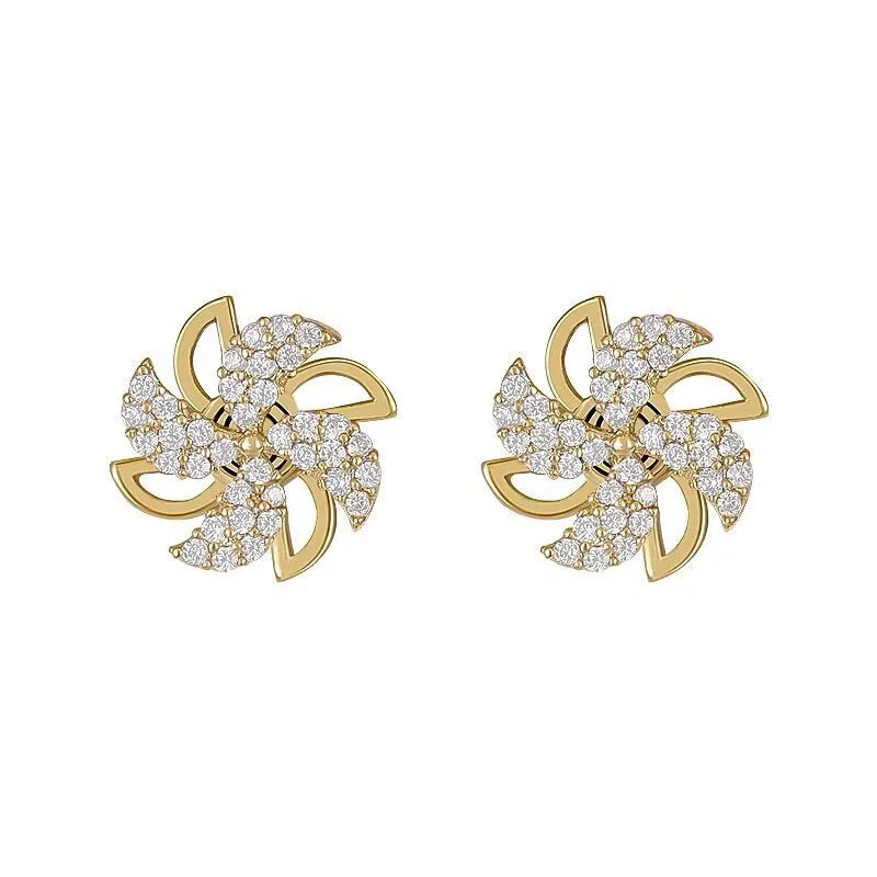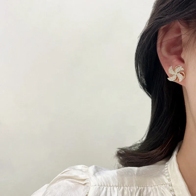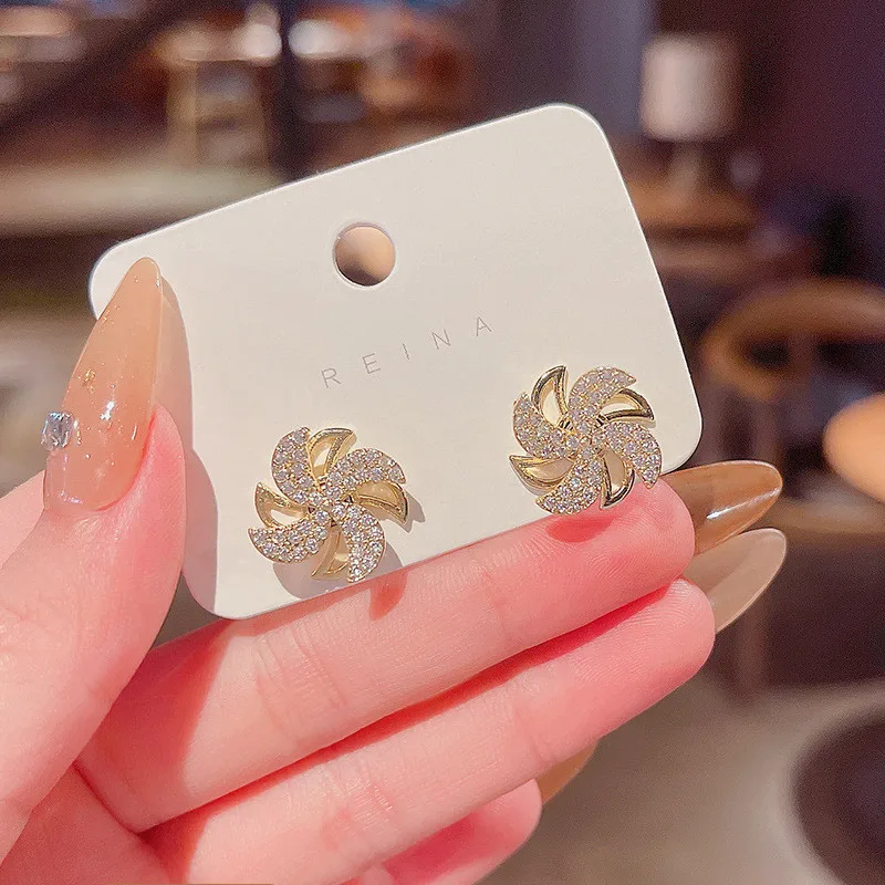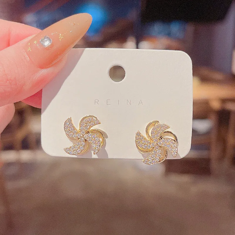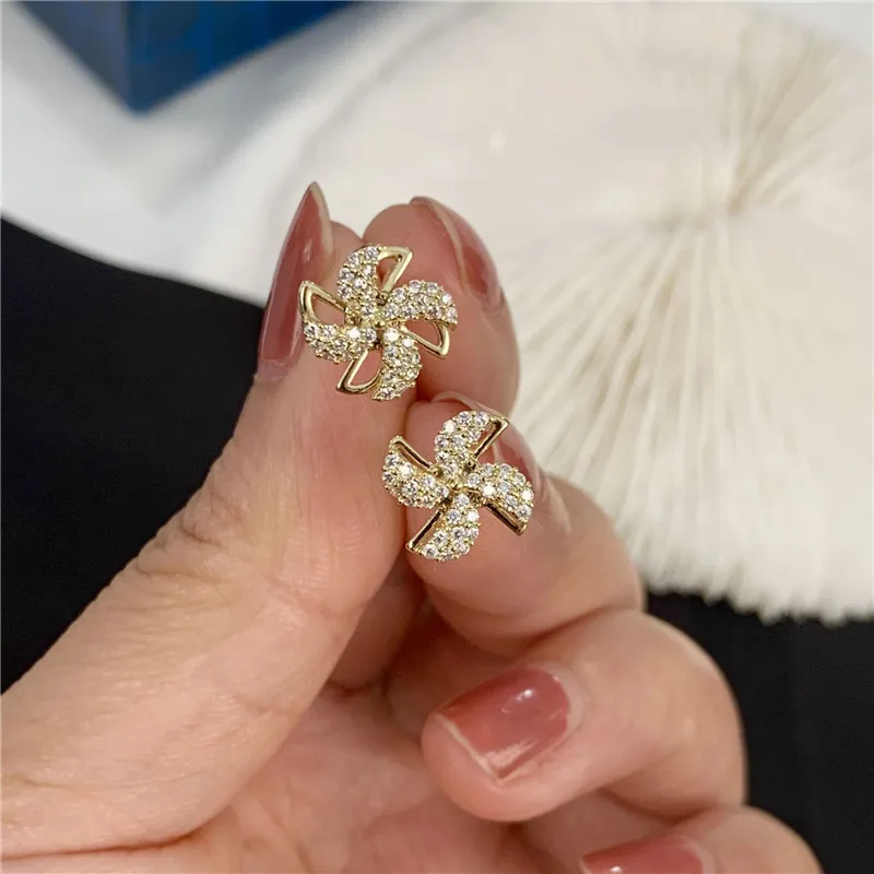 2021 модные вращающиеся золотые серьги в виде крыльев мельницы для девочек корейские модные роскошные циркониевые женские серьги необычные ювелирные изделия подарки бесплатно