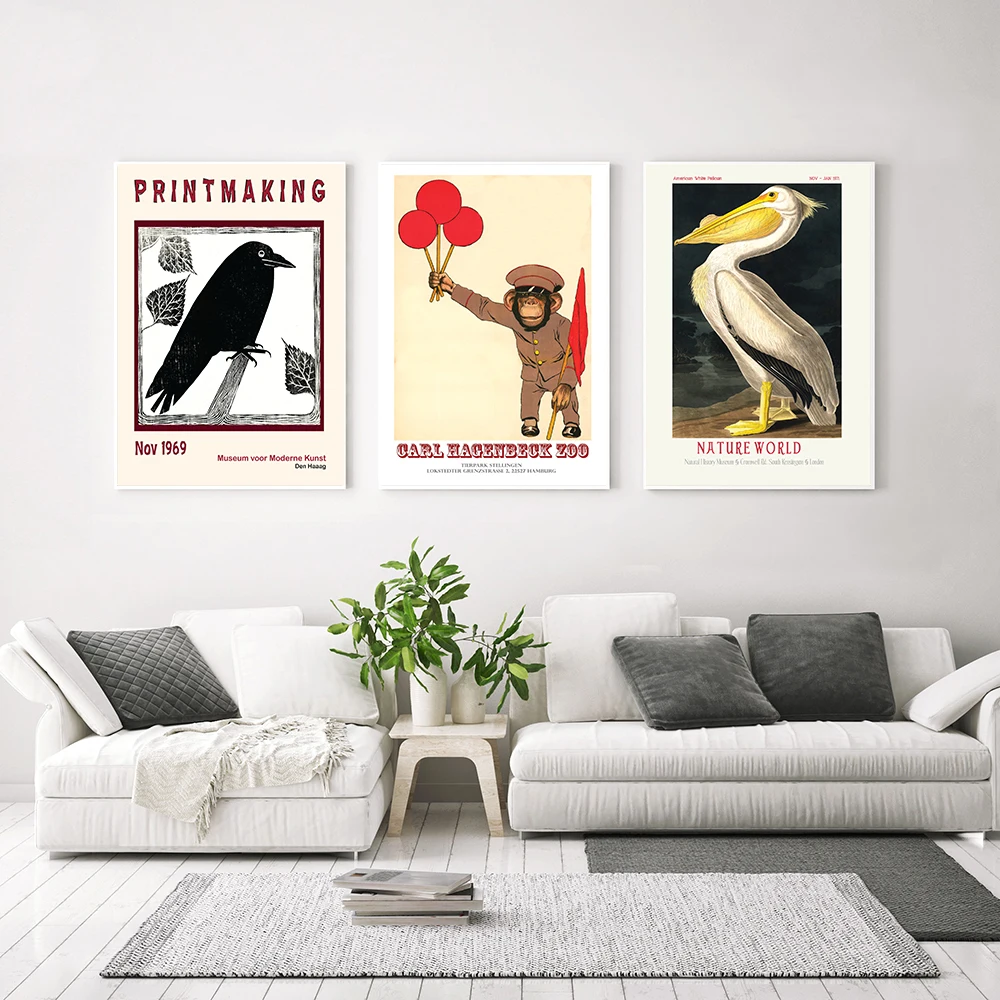 Цирковая обезьяна, плакат, американский белый пеликан, птица, животное, принт, природное искусство, украшение на стену, для детской комнаты, для дома, спальни, с изображением
