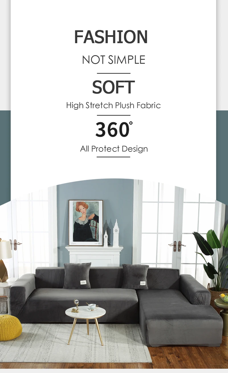 Бархатный плюшевый чехол для дивана, эластичный плотный L-образный ...