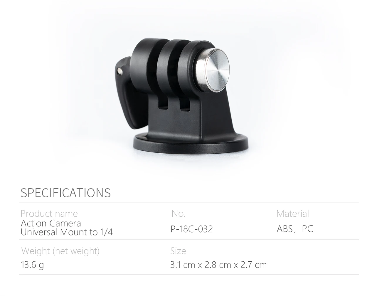 ● Функция нашей экшн-камеры Универсальное крепление интегрирует Универсальное крепление и интерфейс 1/4, делает соединение устройств с 2 различными интерфейсами