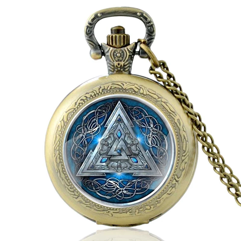 Часы наручные викингов с треугольным знаком из античной бронзы, кварцевые карманные винтажные мужские и женские часы с подвеской на ожерелье, подарок