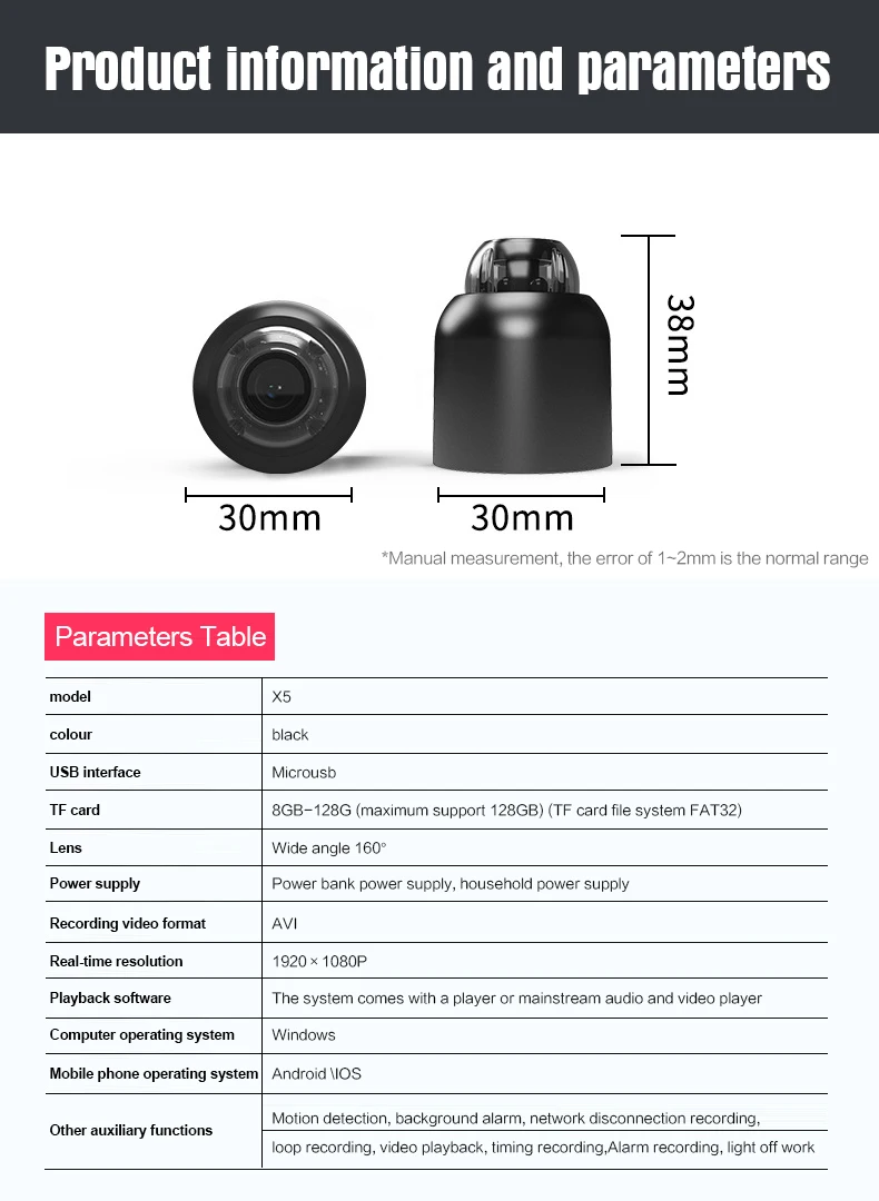Мини-камера видеонаблюдения 1080P HD, беспроводная, с ночным видением и датчиком движения