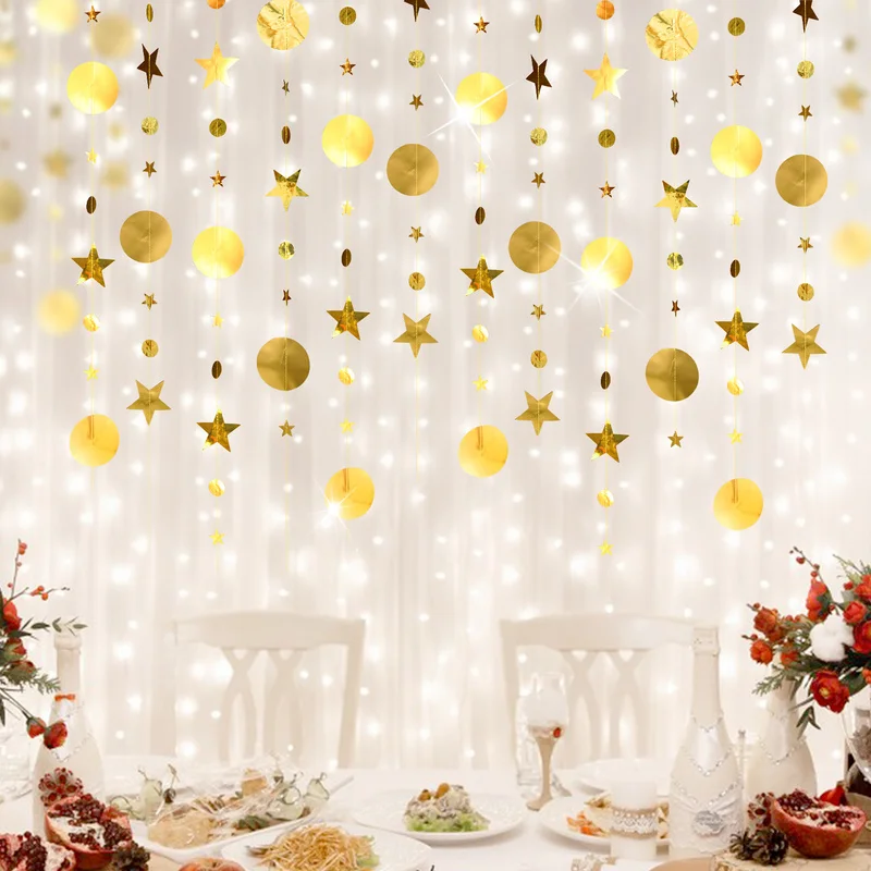 Свадебное украшение, 4 м, золотые, серебряные звезды, круглые бумаж...