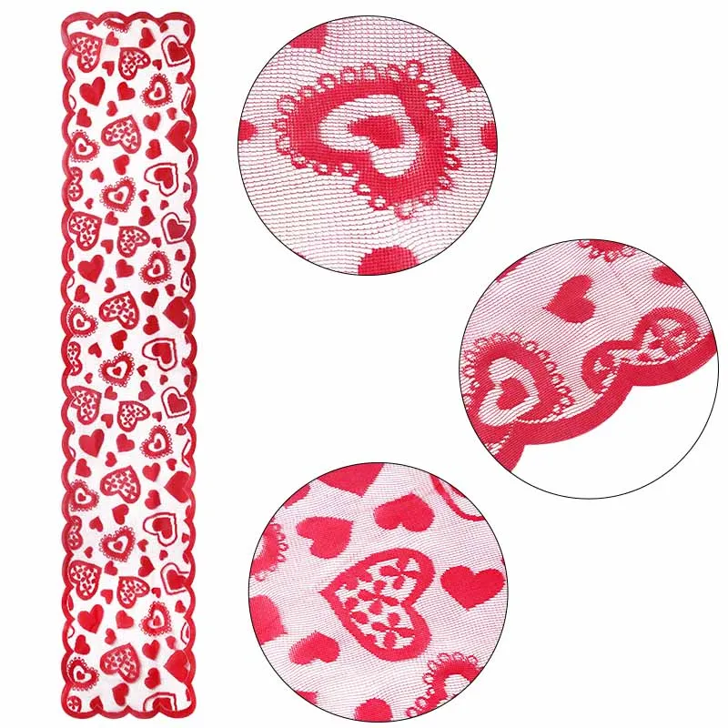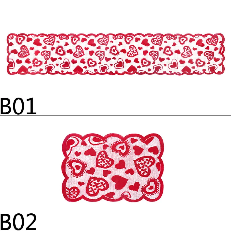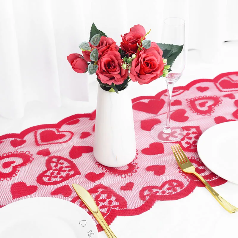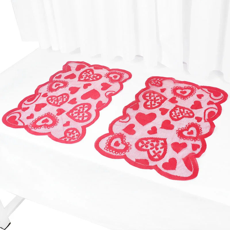 Кружевная настольная скатерть в виде красного сердца, сетчатая ткань, скатерть на День святого Валентина, украшение для дома, товары Вечерние