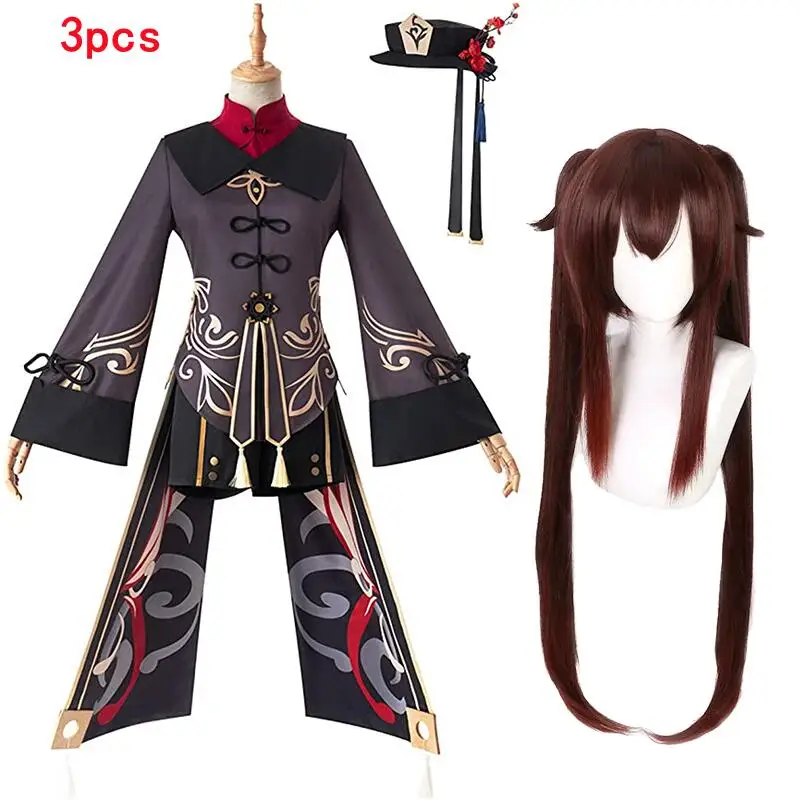 Костюм Ху Тао из игры геншин, косплей, парик, шляпа, пальто, аксесс...