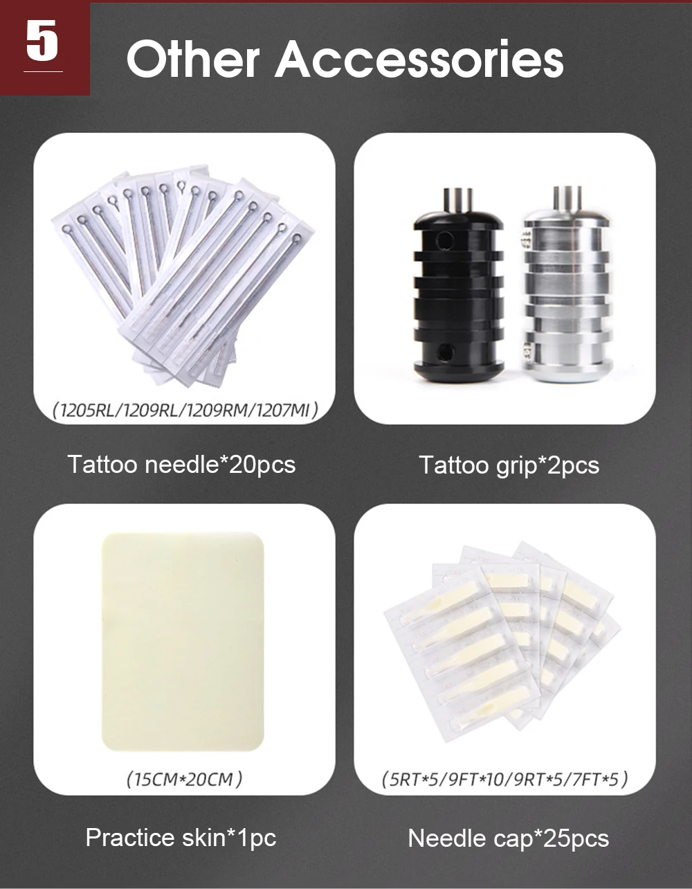 Набор профессиональных тату-машинок с ЖК-экраном, цифровой источник питания с иглами, набор чернил для перманентного макияжа и татуировок в комплекте