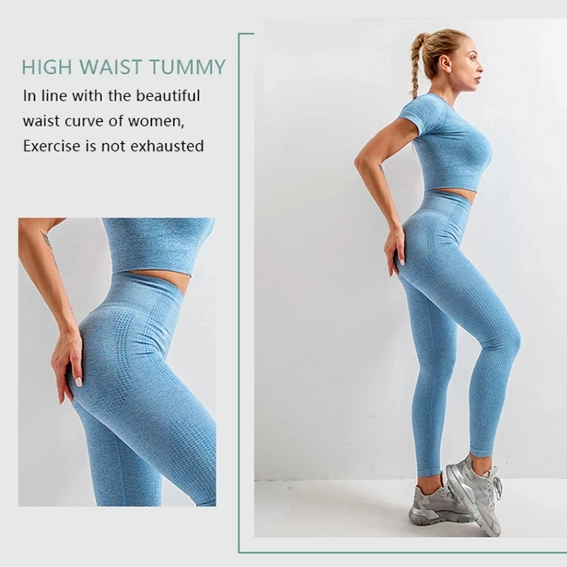 Бесшовный комплект для йоги, одежда для спортзала, одежда для тренировок для женщин, комплект для тренажерного зала, спортивная одежда с высокой талией, костюм для йоги и фитнеса