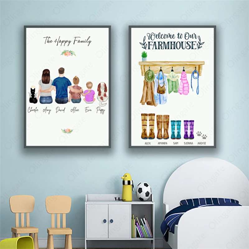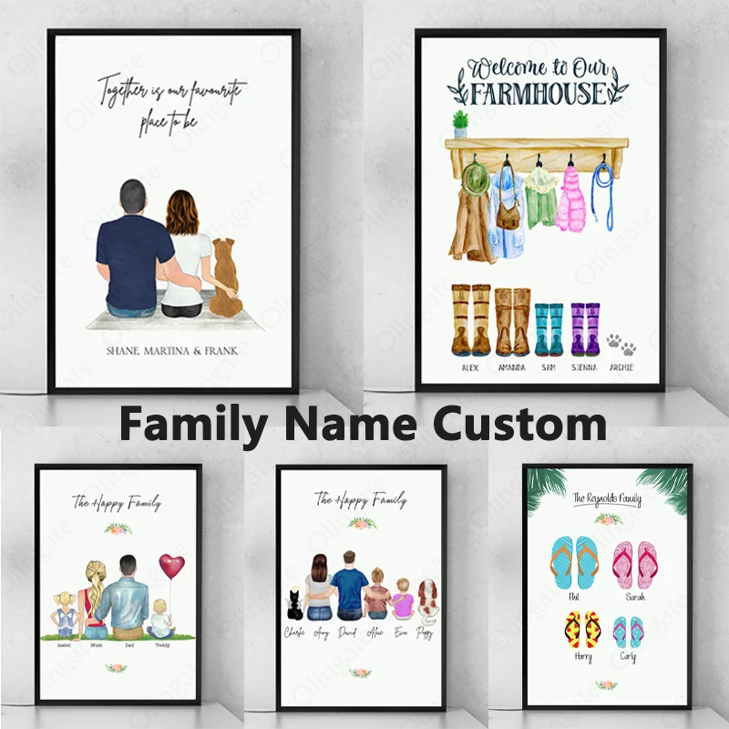 DIY рисунок с именем семьи, фотография на холсте с именем под заказ...