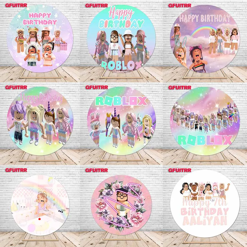 GFUITRR ROBLOX круглая фотография Фон Дети День рождения Baby Shower фото фон радуга круглая виниловая фотобудка реквизит