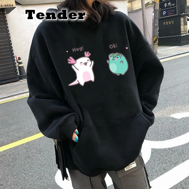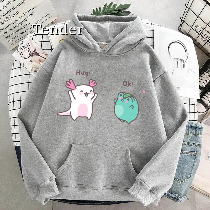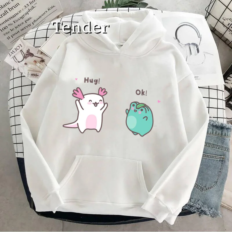 Модные мужскиеженские толстовки Axolotl, весенне-осенние повседневные толстовки с рисунком лягушки, свитшоты унисекс белого цвета, толстовки, свитшоты, топы