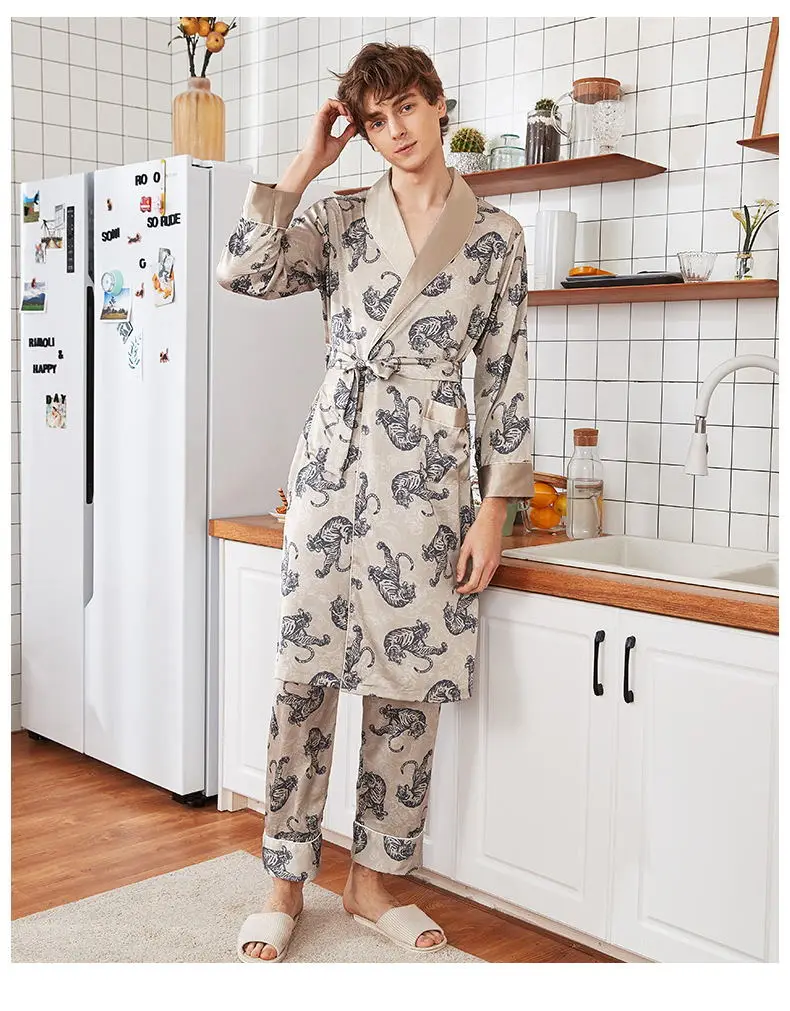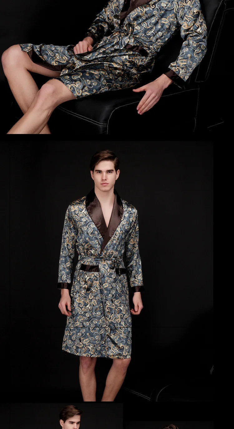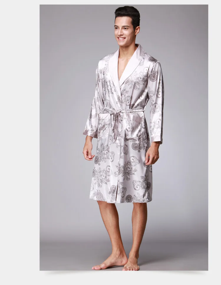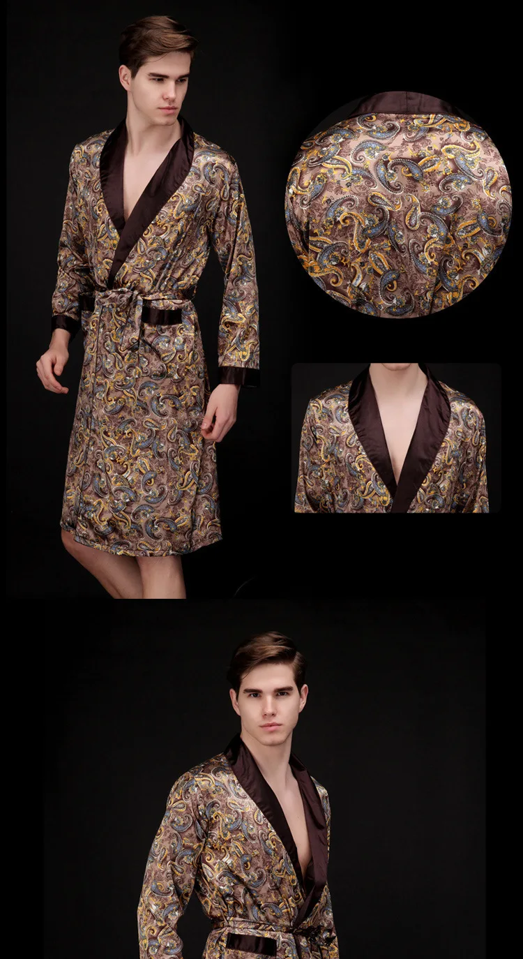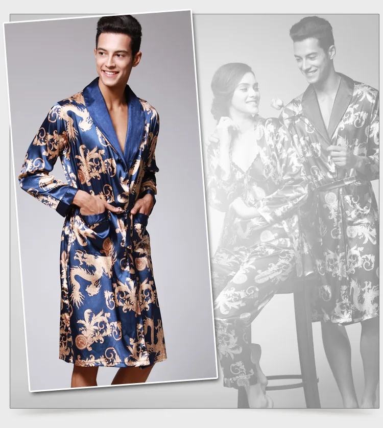 Халат Kwyaster Мужской Атласный с длинным рукавом, пижама с принтом дракона, кимоно с Фениксом, халат, Повседневная Домашняя одежда, свободная Пижама